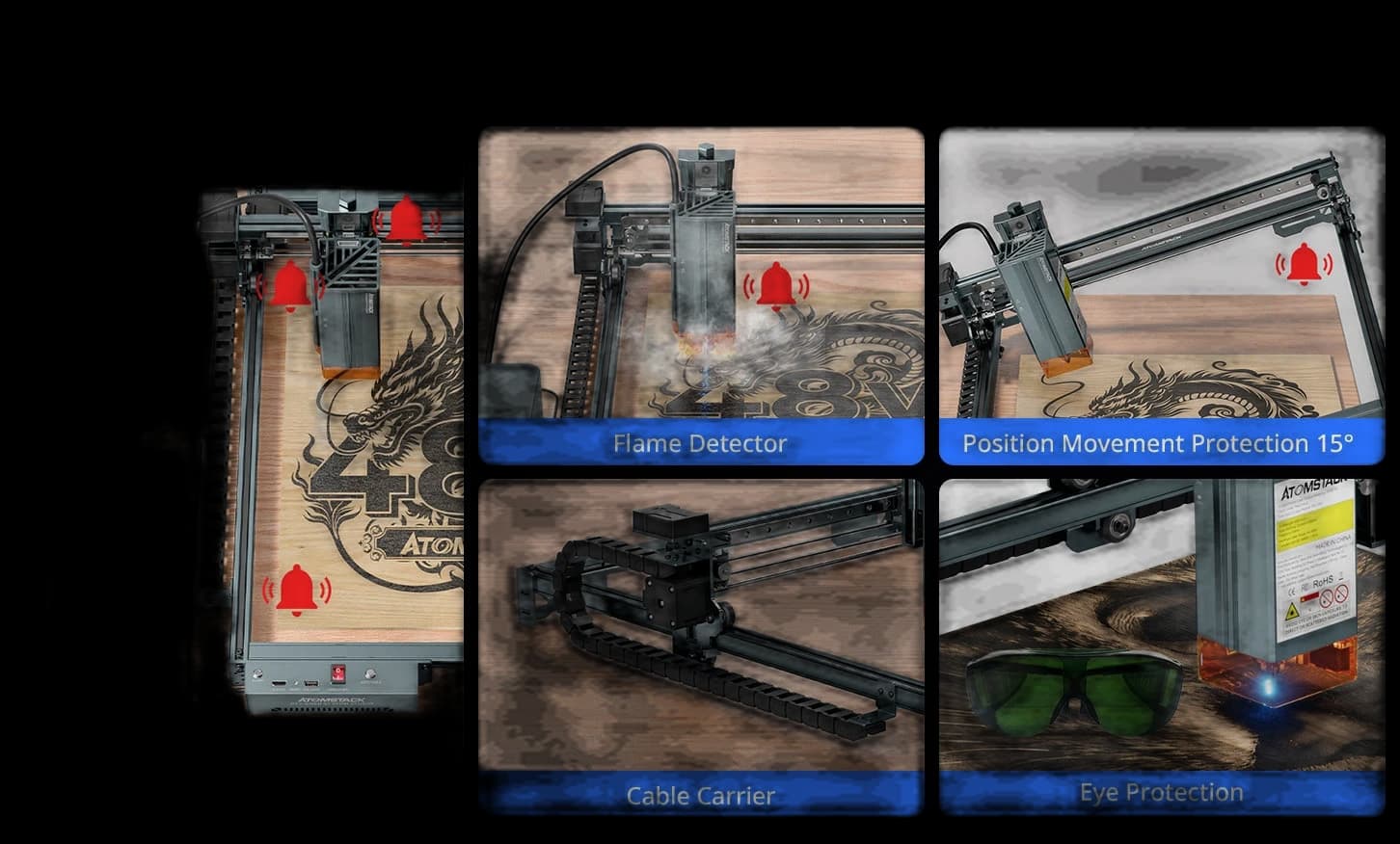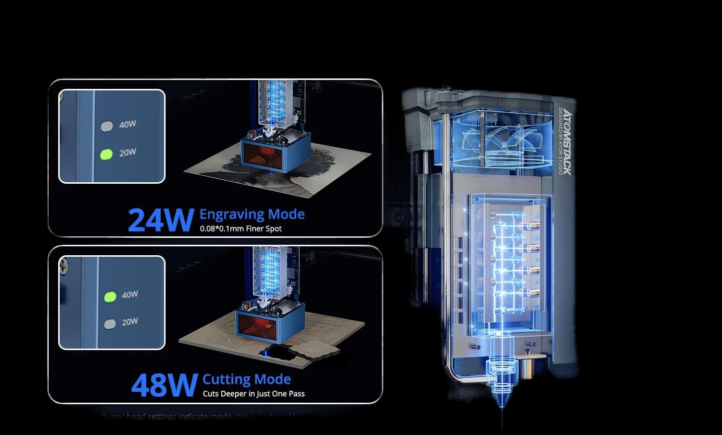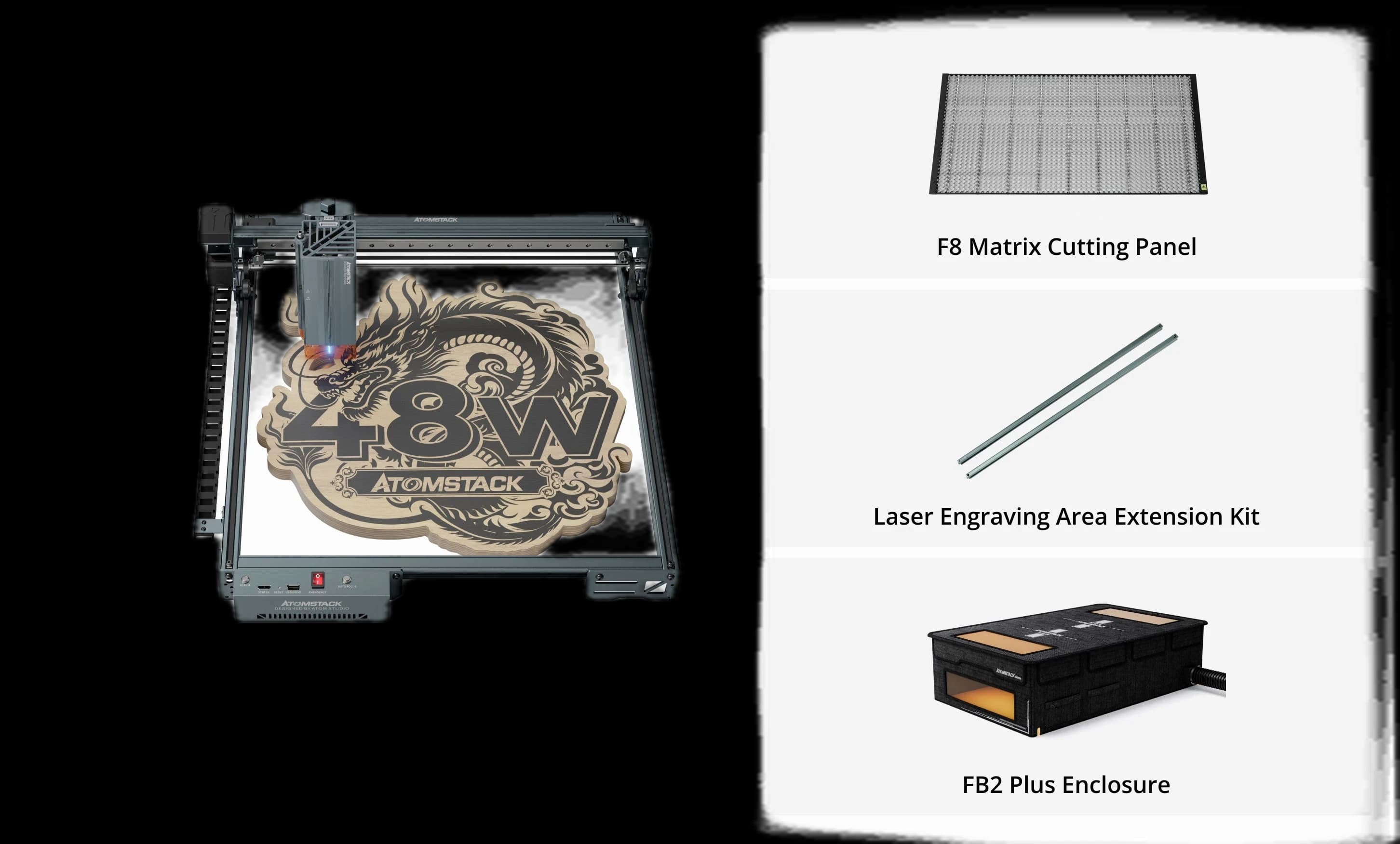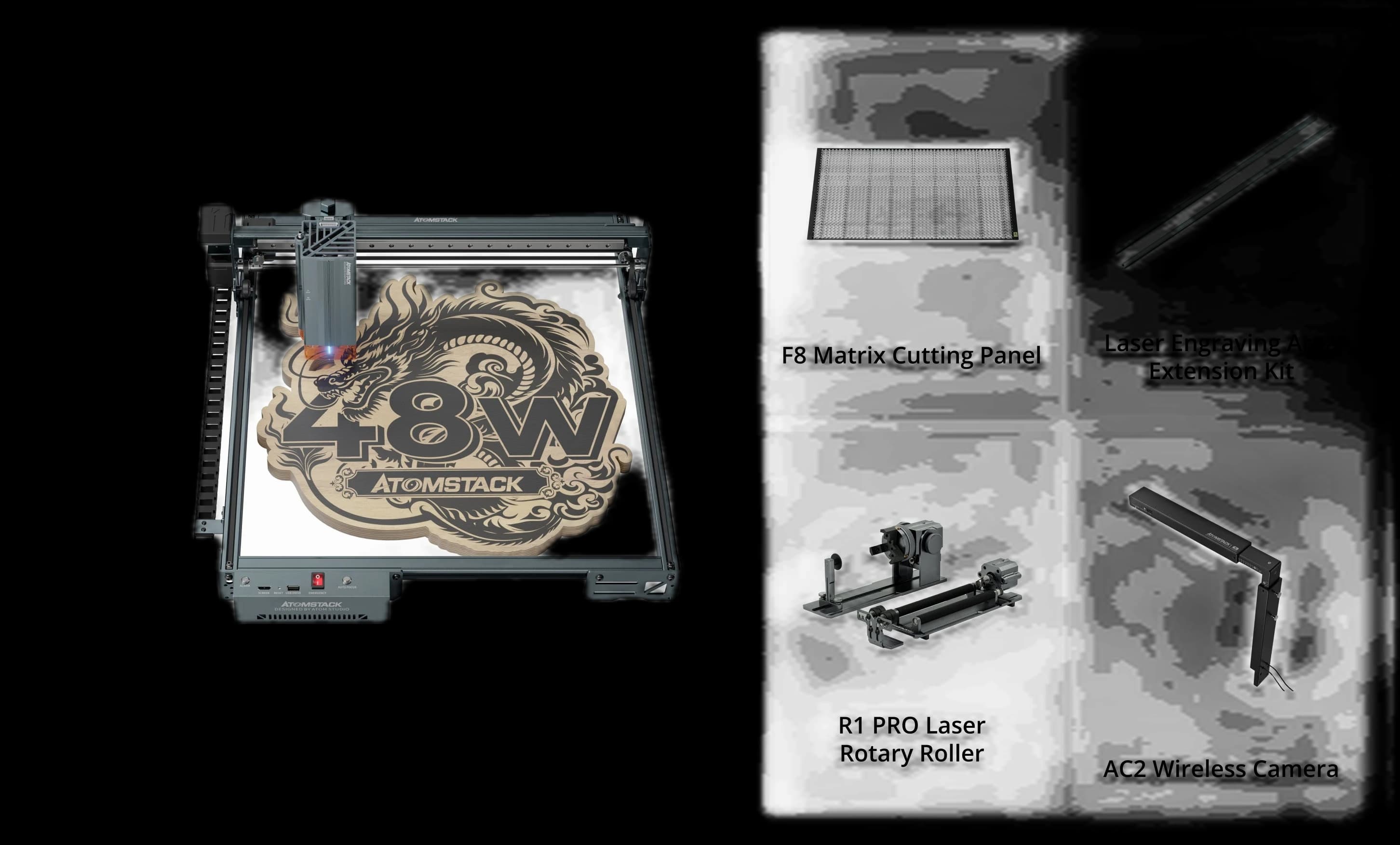 The AtomStack A40 Pro V2 Laser Engraver with F60 Air Assist Kit is a professional-grade machine for precise engraving and cutting. It features a switchable 48W / 24W laser and an ultra-fine 0.08 × 0.1 mm laser spot, delivering both high precision and powerful cutting performance. Built-in auto focus and air assist make setup fast and results cleaner across a variety of materials. Supporting a 385 × 400 mm working area, the A40 Pro V2 is ideal for projects of all sizes. Perfect for creators, artisans, and businesses looking for a reliable and powerful laser solution.