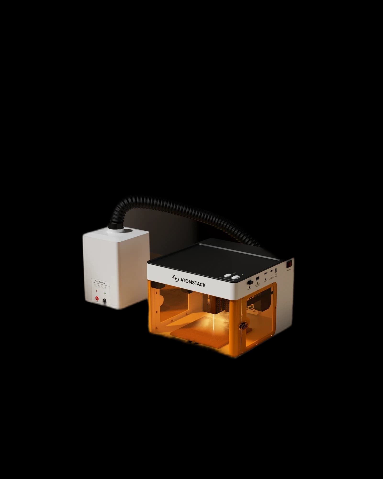 The AtomStack D5 Mini Air Purifier for P1 is the ideal accessory for your laser engraving and cutting tasks. Specifically designed for the AtomStack P1, this device effectively filters smoke, odors, and harmful particles, ensuring a clean working environment. With its compact design and powerful filtration technology, the air purifier maintains optimal air quality while you work precisely and safely. The D5 Mini Air Purifier is easy to use and can be directly connected to the P1, eliminating the need for additional power sources. Its filtration performance is tailored to typical laser engraving applications, offering high efficiency in removing smoke particles. This device is perfect for hobbyists, DIYers, and professionals who prioritize a healthy workspace. Thanks to its quiet operation, it doesn’t disrupt your work, and its flexible design allows easy placement in your workspace. The air purifier is low-maintenance, and filters can be replaced effortlessly.