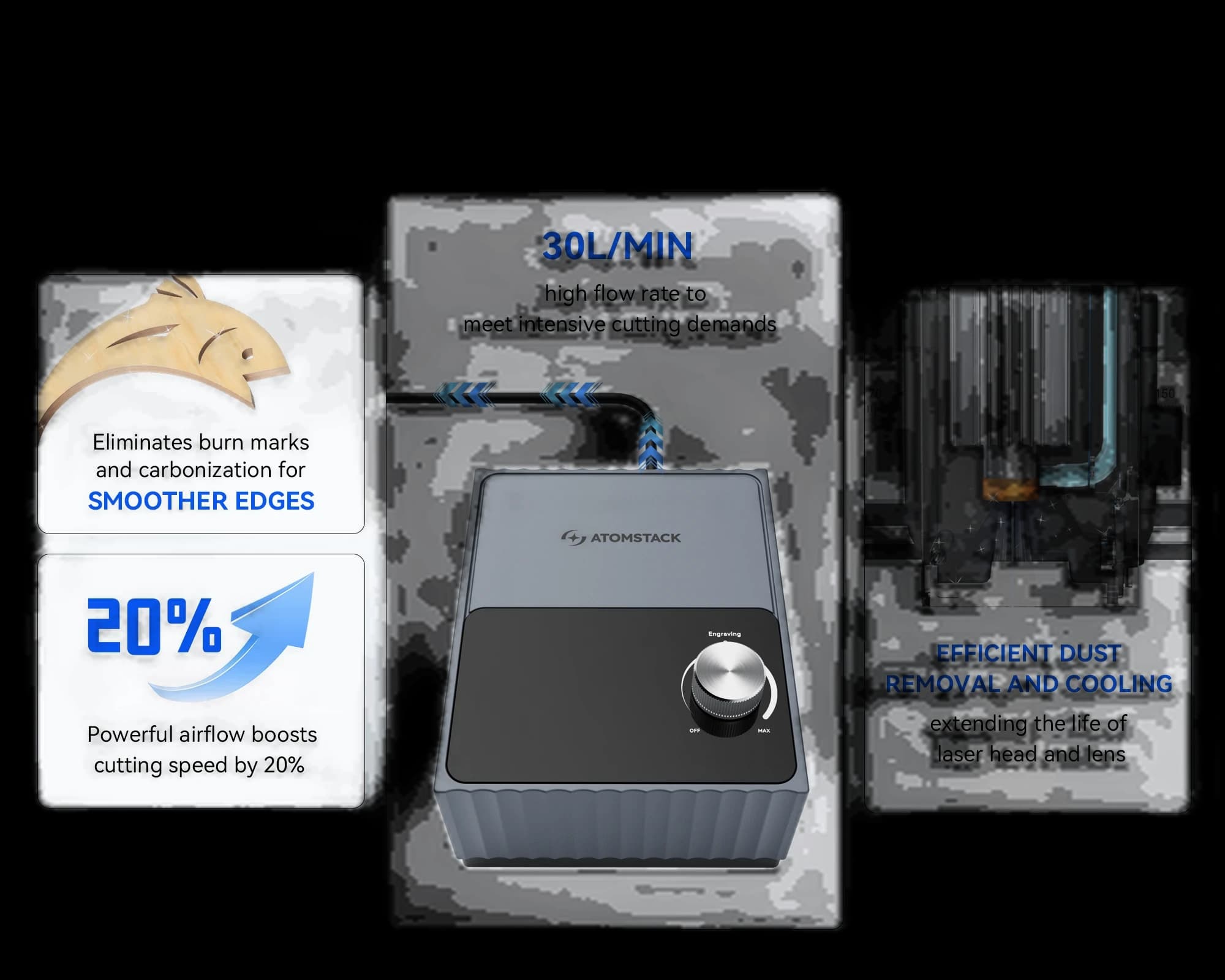 AtomStack F40 Air Assist Set for Swift Laser Engraver vs Longer B1 20W Laser Engraving Machine, xTool P2S 55W Desktop CO2 Laser Cutter for Education
