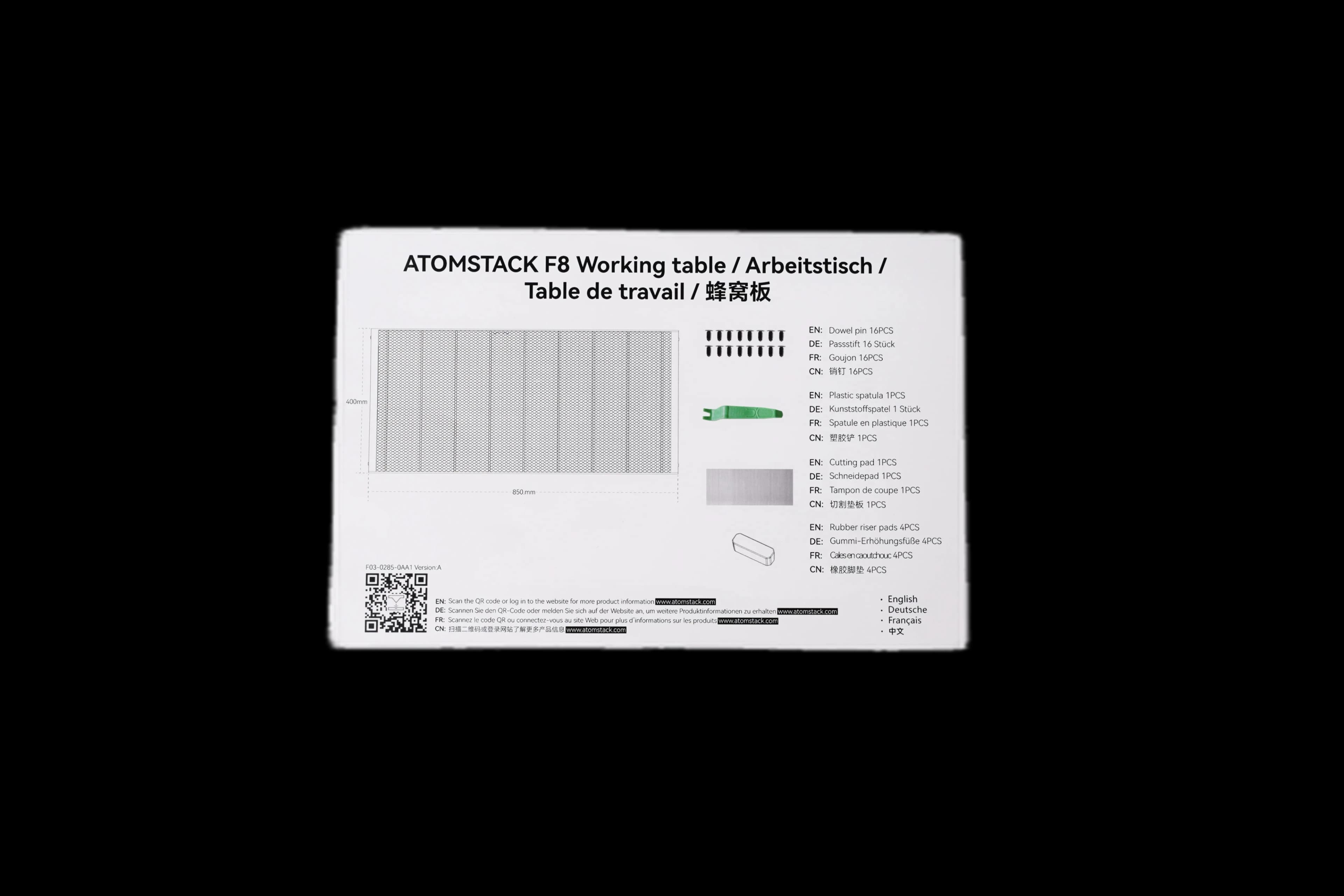 The AtomStack F8 Laser Engraving Cutting Honeycomb features a large 15.43" x 31.89" working area, designed to elevate your laser engraving projects. Its sturdy honeycomb frame facilitates rapid heat dissipation and efficient smoke exhaust, ensuring enhanced cutting precision and overall performance. The spacious 392mm x 810mm work surface accommodates most laser engravers, providing ample room for your creations. This accessory delivers a superior cutting effect with smooth edges, clean work, and a stain-free outcome. The desktop double protection feature prevents project over-burning and safeguards your work surface and completed piece. Equipped with 4 anti-slip pads for stability and secure material fixing, and featuring smooth-edged corners for hand safety. Please note: This accessory is not compatible with the ATOMSTACK Hurricane 55W CO2 Laser Cutter.
