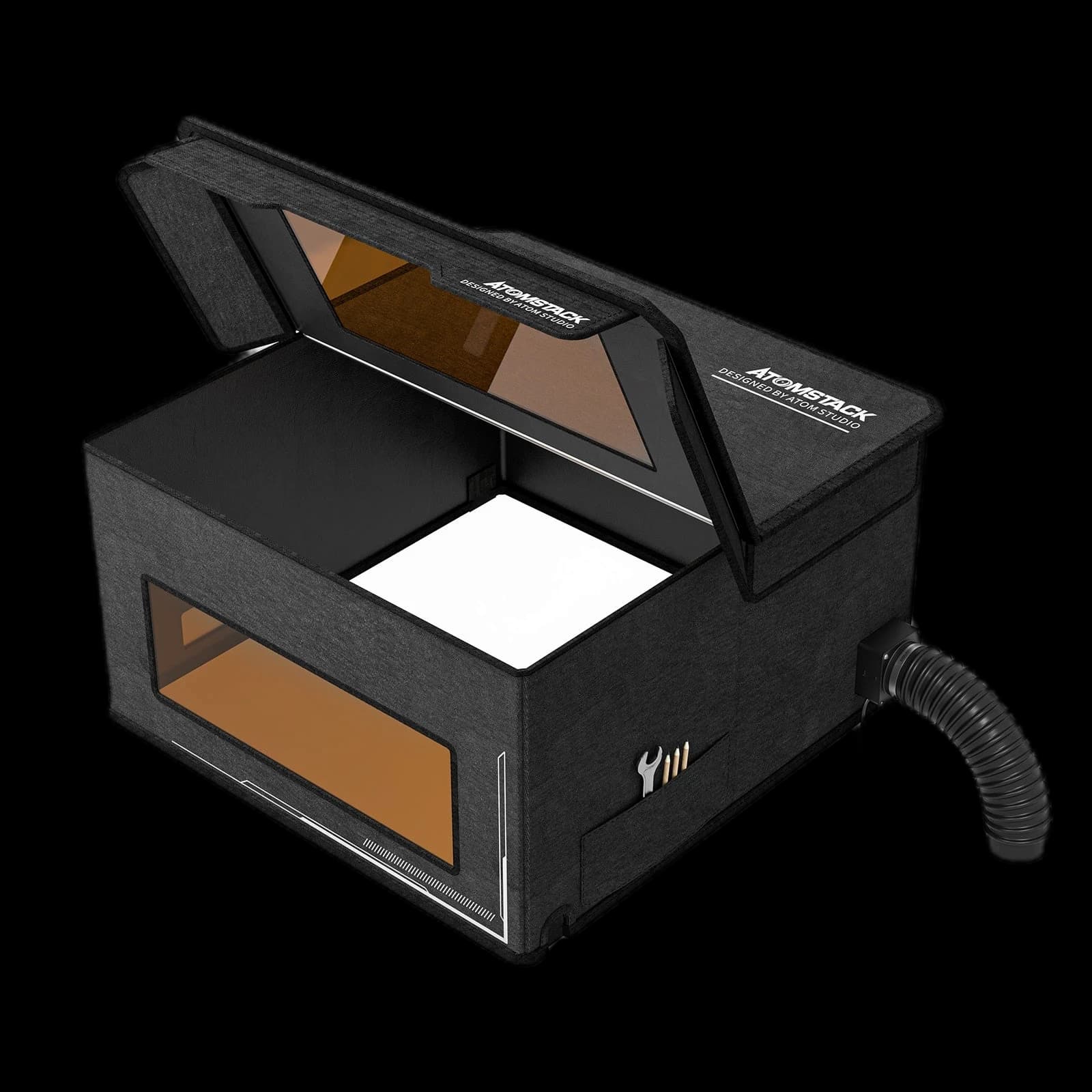 Protect your workspace and enhance safety with the AtomStack FB2 Enclosure. Designed for laser engravers and cutters, its three-layer fire-resistant fabric provides up to 10 minutes of protection against open flames. The hard shell enclosure requires no assembly and is ready for use right out of the box. With an interior volume of 760x740x420mm, it accommodates most desktop laser and CNC machines, effectively preventing debris and reducing noise. This enclosure is essential for creating a safer, cleaner working environment. Note: This accessory is not compatible with the ATOMSTACK Hurricane 55W CO2 Laser Cutter.