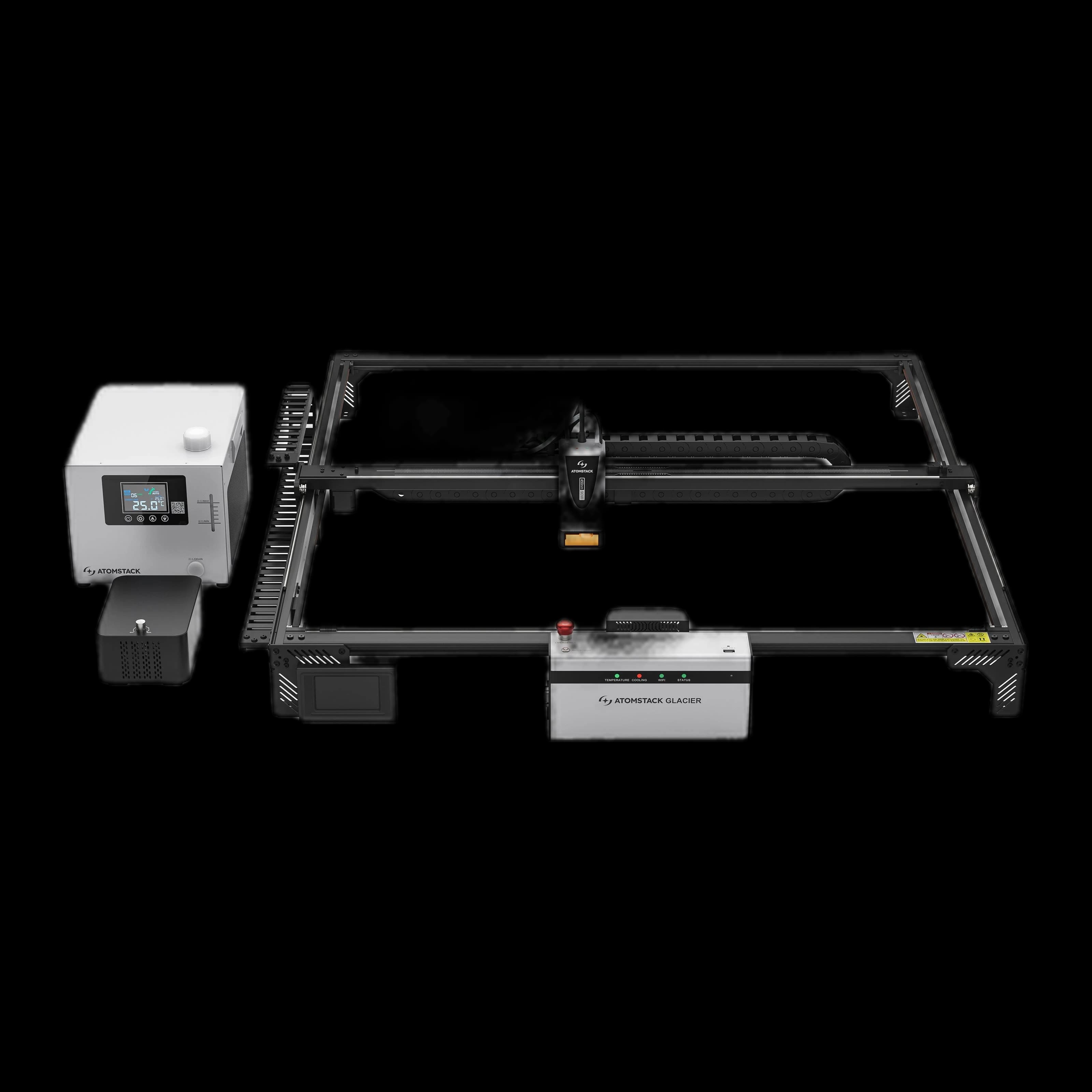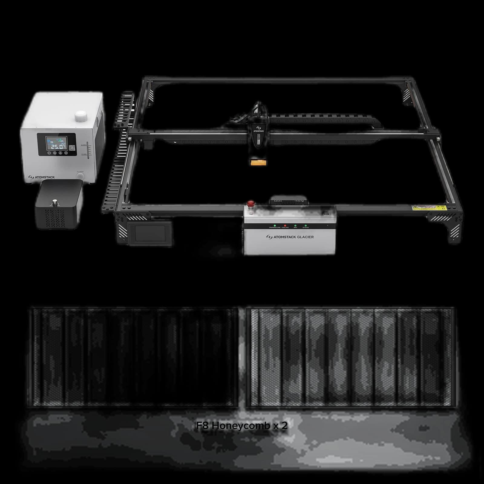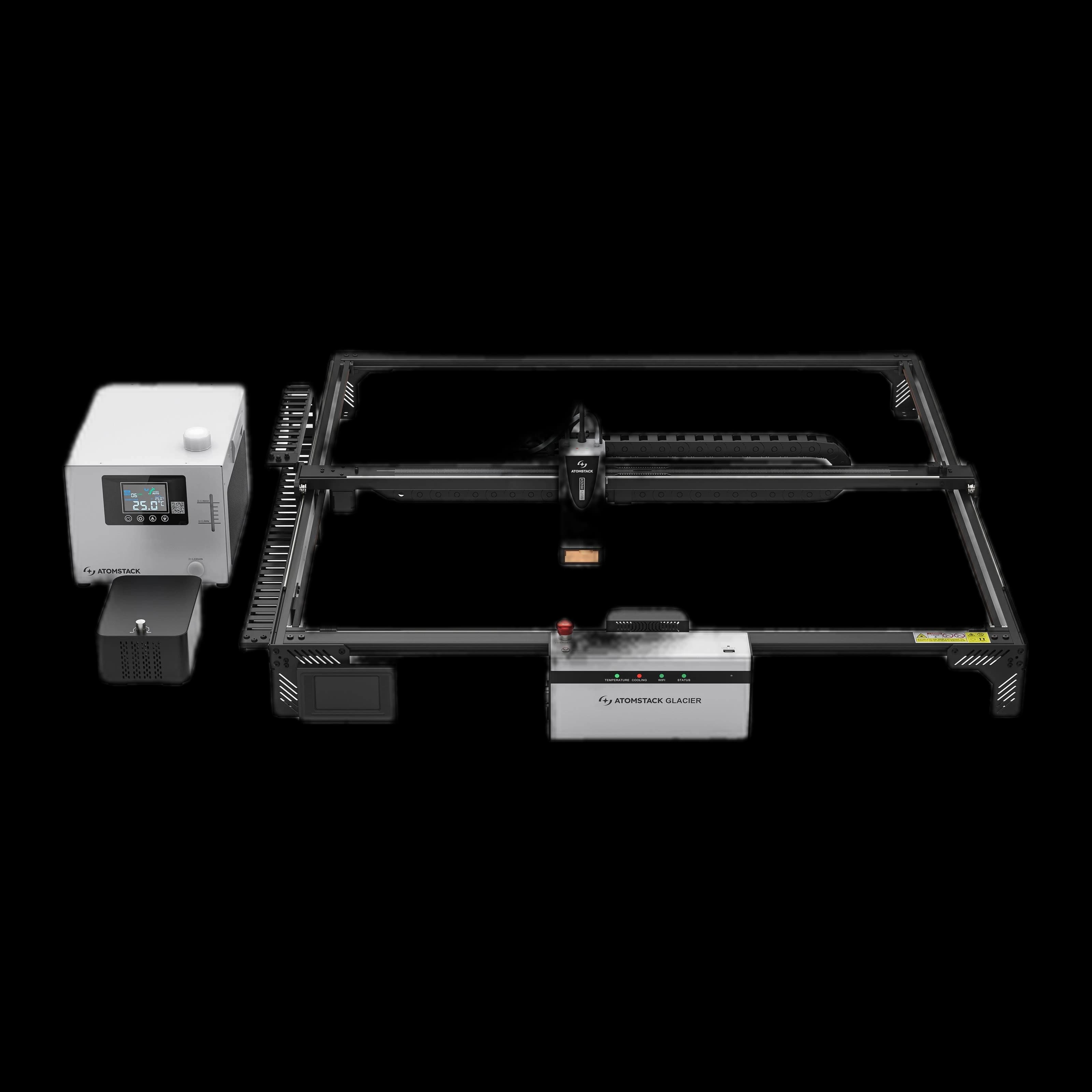 The AtomStack Glacier Water-Cooled Diode Laser Engraver features a 120W high-power water-cooled laser that stays stable and efficient even during long, continuous operation with zero power decay, making it ideal for demanding workflows. Its 800 × 800 mm working area lets you tackle large projects with ease, and enhanced durability ensures precise, reliable results while extending daily productivity. Built for long-term use, Glacier’s water-cooling system increases laser life and reliability, supporting sustained 24/7 operation and reducing maintenance—a powerful, stable solution for large-scale cutting and engraving.