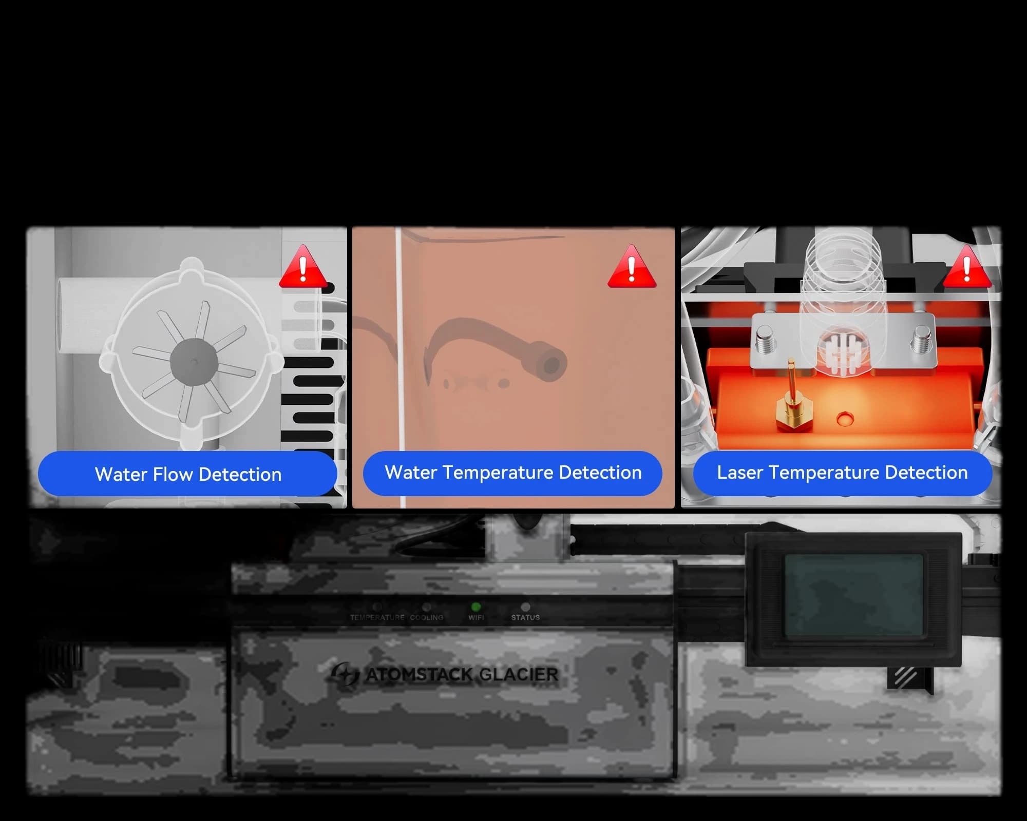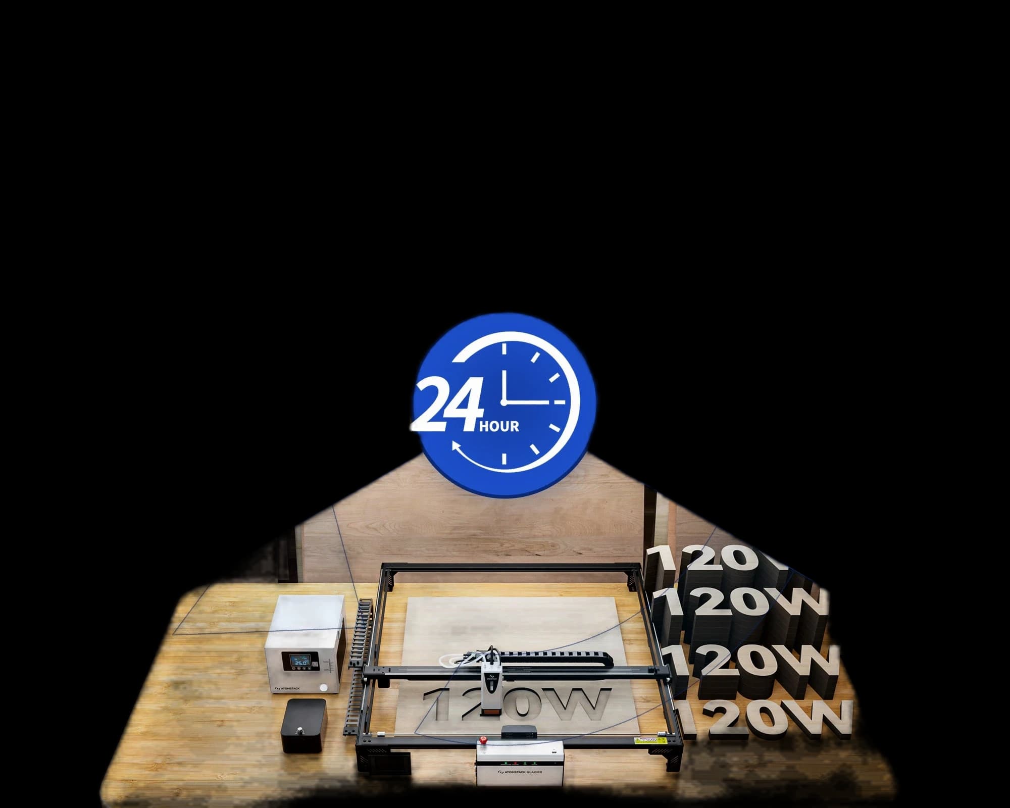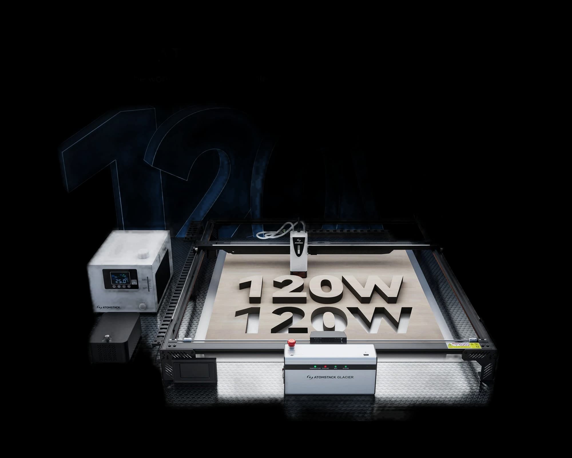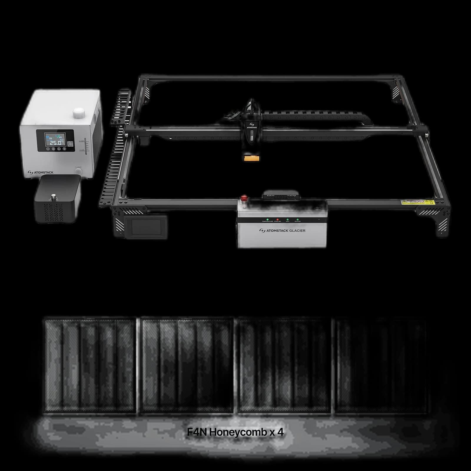 The AtomStack Glacier Water-Cooled Diode Laser Engraver features a 120W high-power water-cooled laser that stays stable and efficient even during long, continuous operation with zero power decay, making it ideal for demanding workflows. Its 800 × 800 mm working area lets you tackle large projects with ease, and enhanced durability ensures precise, reliable results while extending daily productivity. Built for long-term use, Glacier’s water-cooling system increases laser life and reliability, supporting sustained 24/7 operation and reducing maintenance—a powerful, stable solution for large-scale cutting and engraving.