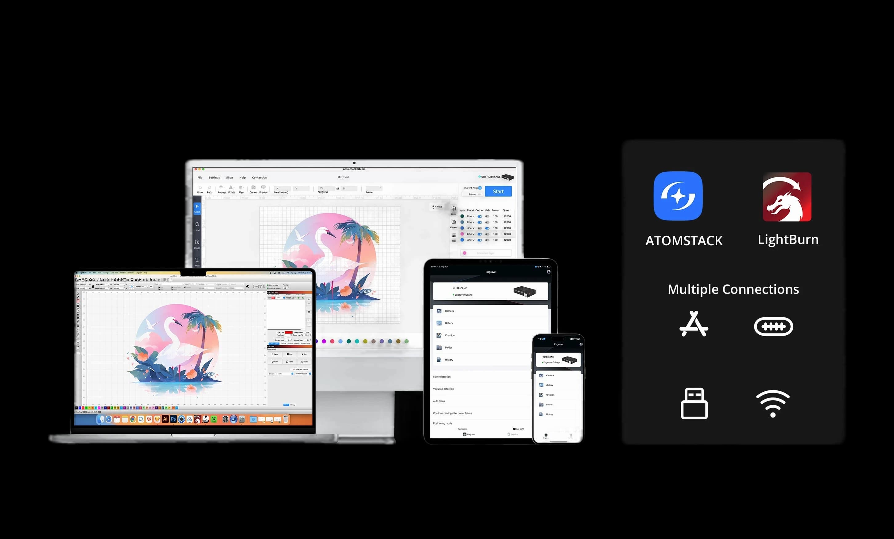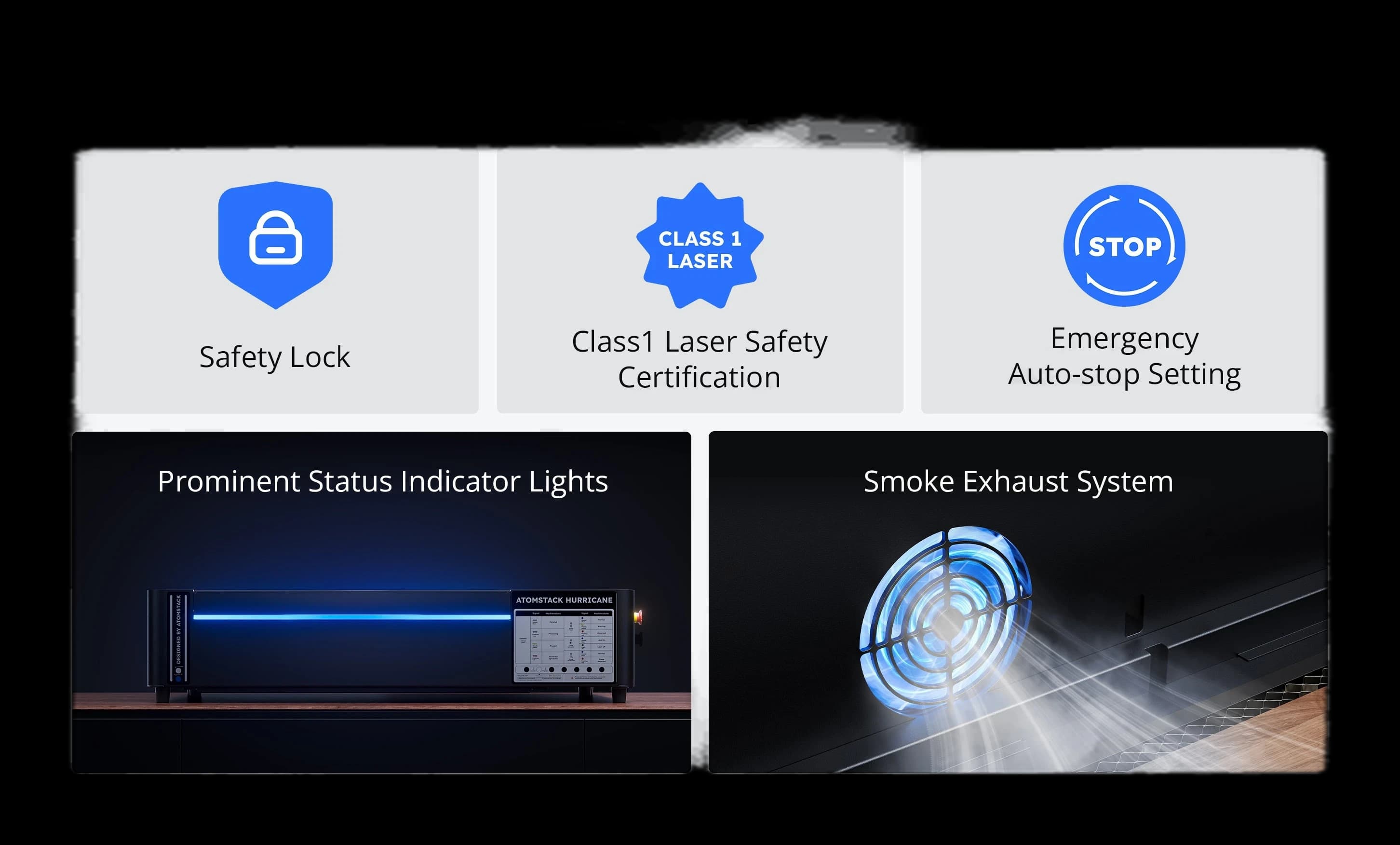 Discover the AtomStack Hurricane 55W CO2 Laser Cutter, a powerful tool for precise cutting and engraving. This high-performance 55W CO2 laser quickly and accurately processes materials like wood, acrylic, leather, and fabric. It's perfect for creative projects, small-batch production, or personal crafting. Featuring a robust construction and exceptional precision, the Hurricane is the ideal choice for artists, crafters, and small businesses. AtomStack delivers quality and reliability with every machine. Invest in a tool that brings your creative visions to life with unmatched clarity and efficiency.