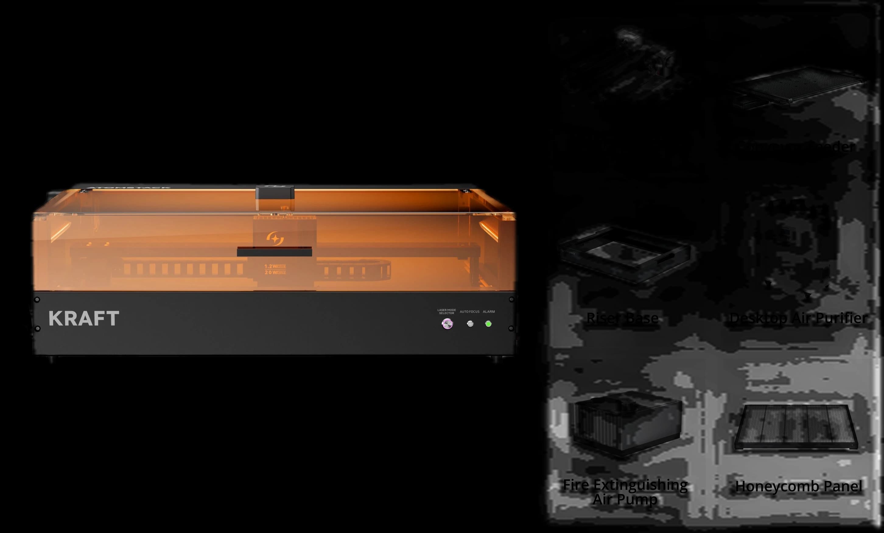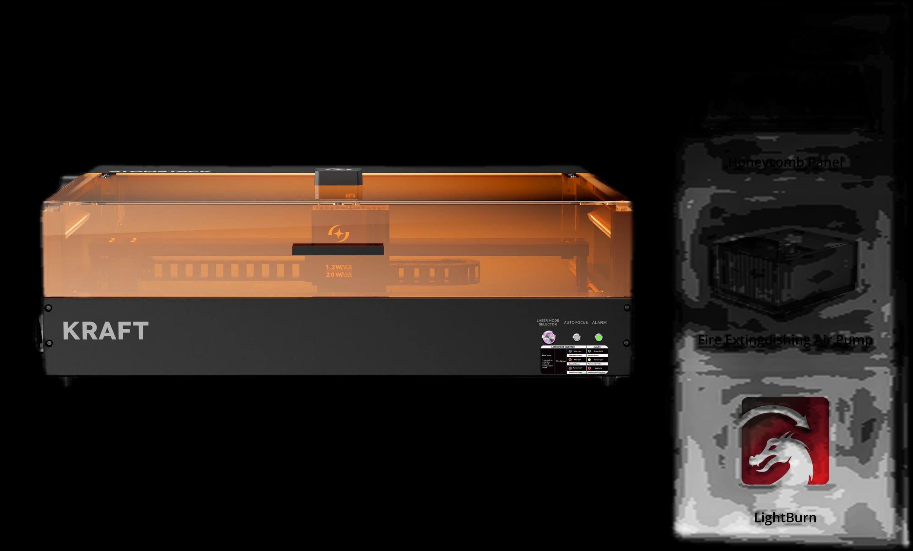 Discover the revolution in laser engraving with the AtomStack Kraft Dual-laser Engraver 20W + 1.2W IR. It's the world's first synchronized dual-laser engraver, offering three laser modes with a one-button switch. The synchronized 20W diode and 1.2W IR lasers provide unmatched power and precision. Perfect for engraving wood, leather, plastic, and other materials. This laser cutter and engraver combines the power of two lasers into one device, allowing you to work more efficiently and achieve professional results. The AtomStack Kraft is designed for creatives, crafters, and professionals who demand the highest quality and reliability.