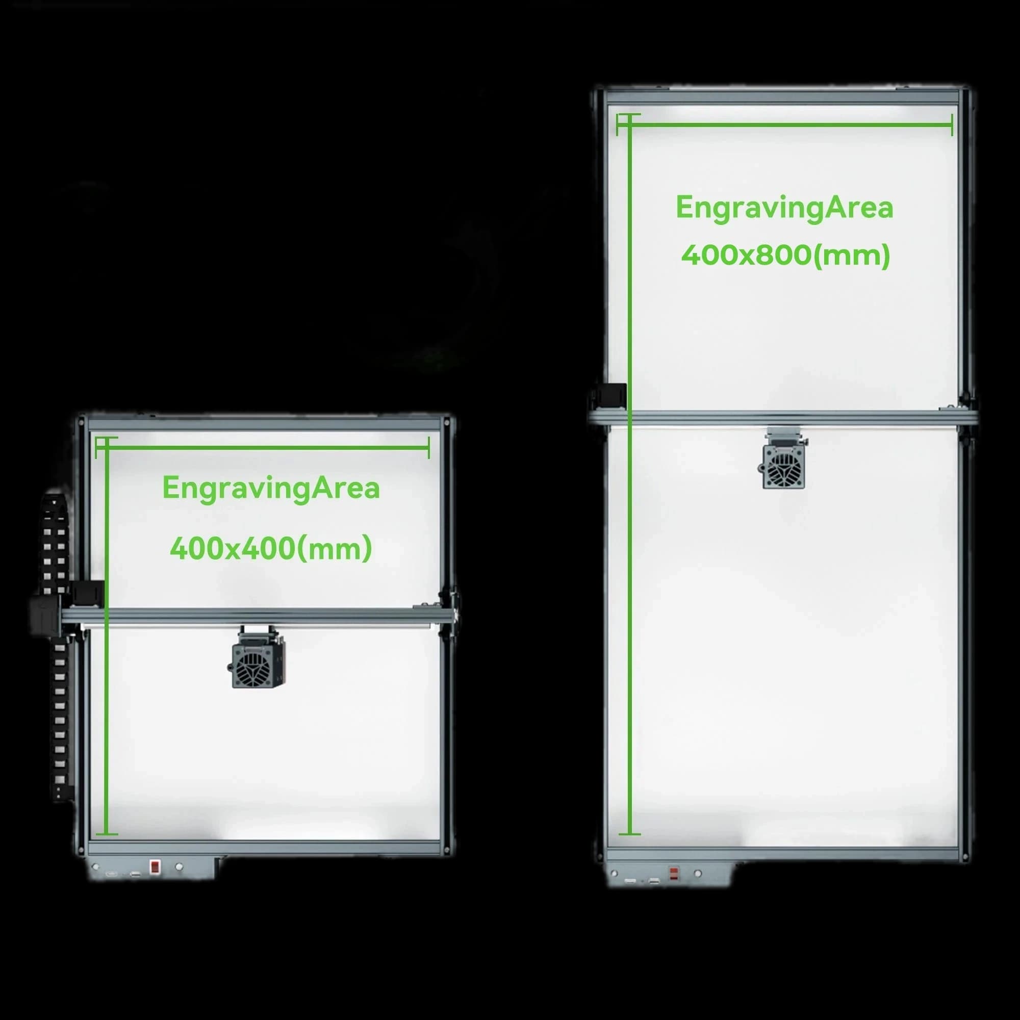 AtomStack Laser Engraving Area Extension Kit for A40 Pro V2. Quickly and conveniently expand your engraving area to 800x400mm by simply replacing the frame shaft of your AtomStack machine. This extension kit features original metal profiles in the same color as the A40 Pro V2, ensuring stability and precision. Equipped with an emergency stop switch for enhanced safety during operation. Compatible only with the A40 Pro V2 model. Specifications: Engraving size after expansion: 400x800mm, Packing weight: 1.6kg. Note: This accessory is not compatible with the ATOMSTACK Hurricane 55W CO2 Laser Cutter.
