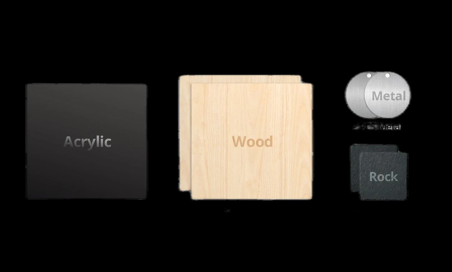 Start creating right away with this specially curated material package for your Kraft laser engraver. This kit is designed to help you explore the full potential of your engraver, providing a variety of materials for testing and creating. The package includes 2 pieces of plank wood for engraving and cutting your first designs, 1 piece of black acrylic for sleek, modern projects, 2 slate coasters to create stunning, personalized designs, and 1 metal sheet to experiment with precise engraving techniques. Jumpstart your creativity with this essential bundle, perfect for exploring your new engraver and achieving great results with ease and confidence.