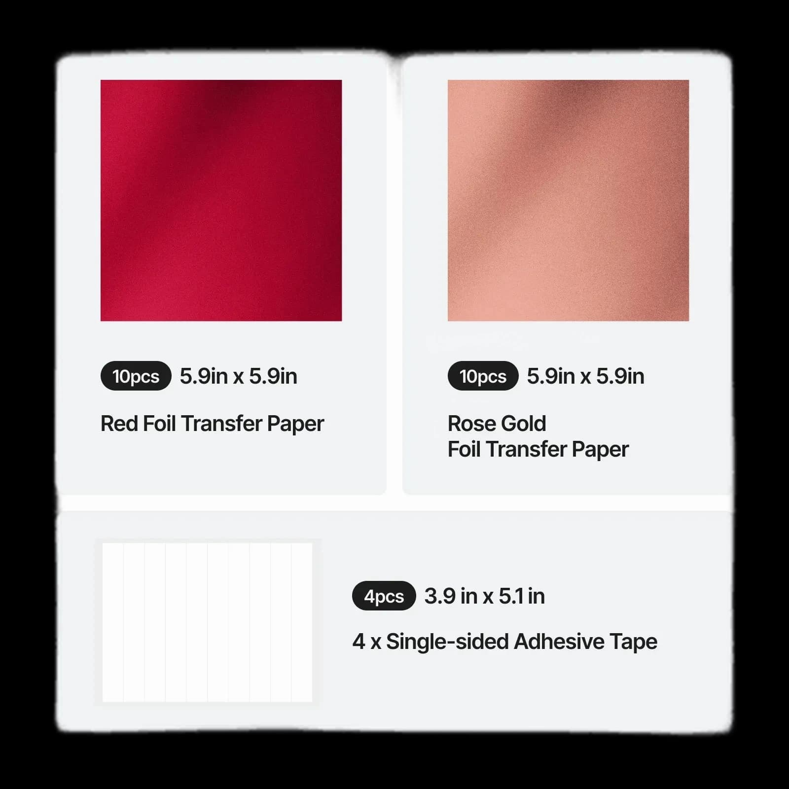 Enhance your hot foiling with these 20 foil transfer sheets from xTool. Each sheet features a QR code for automatic parameter setup—simply place it in the machine and click 'Refresh background' to apply optimal settings. Specially designed for the xTool M1 Ultra Hot Foil Pen, it delivers perfect results on paper, cardstock, leather, acrylic, and boxes. Available in two glossy colors for a vibrant, shiny finish. Rigorously tested for compatibility with the M1 Ultra, ensuring consistent high-quality results. Ideal for professional and creative projects.