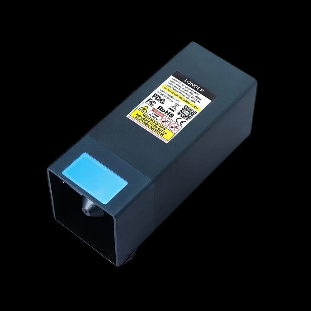 The Longer 3D 40W Laser Module is designed for the Longer Laser B1 series, delivering powerful cutting and engraving capabilities. With a 40W power output, it can cut 20mm basswood and 0.15mm stainless steel in a single pass. Compatible with the Longer Laser B1 body, this module can cut and engrave thousands of materials including wood, leather, ceramics, glass, stone, and metal. Ships in 1-2 business days. Enhance your setup with this high-performance laser module for precise and versatile results.