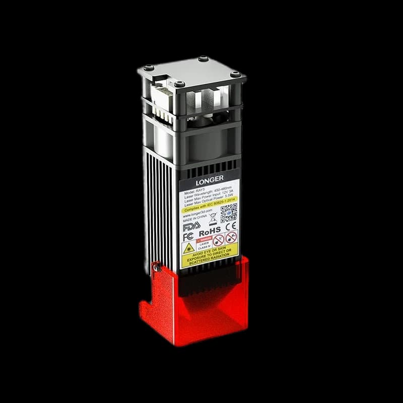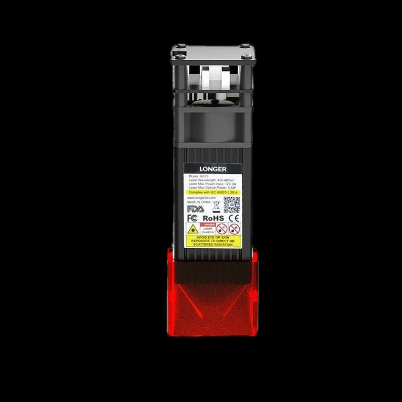 Experience enhanced precision with the 5W Laser Module for Longer Ray5, featuring Compressed Spot Technology for an incredibly fine 0.08 x 0.08mm laser spot. This results in sharper engravings and higher accuracy. The laser head includes a panoramic protective cover that filters 97% of UV rays, ensuring your eyes are safe during operation. As a plug-and-play unit, this module is easy to install, adjust, and connect, making it perfect for DIY engraving machines. It's ideal for engraving plywood, acrylic, stainless steel, aluminum, and more, and can cut materials like 6mm basswood and 3mm acrylic. Perfect for creating company logos, personalized gifts, signage, custom artwork, and so much more.
