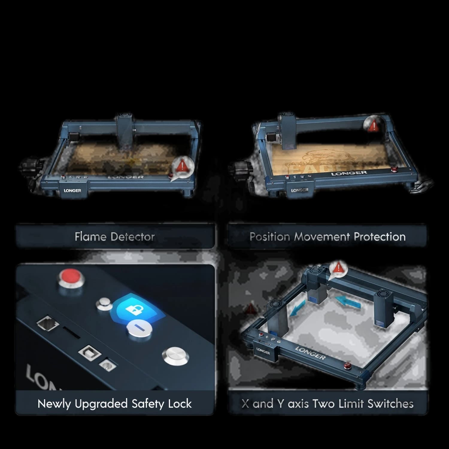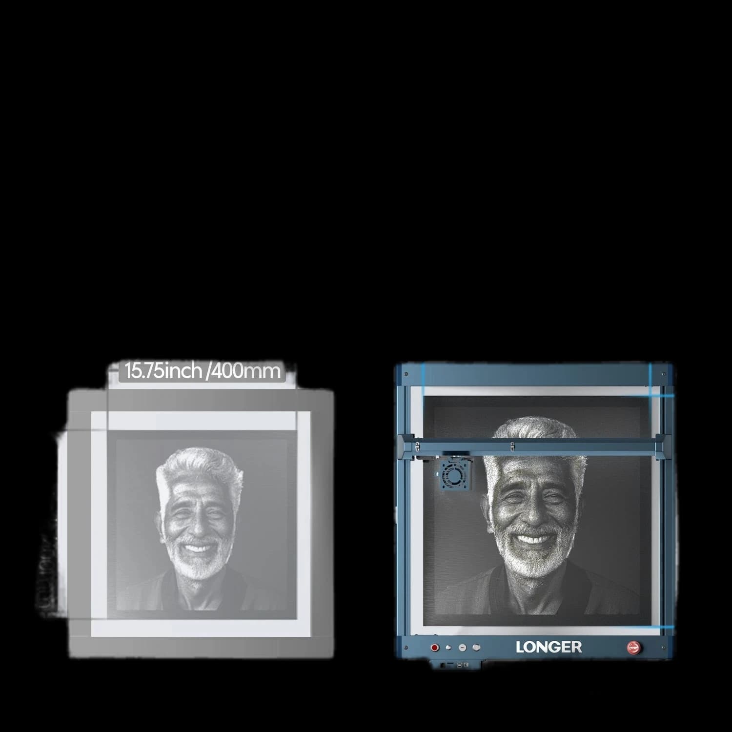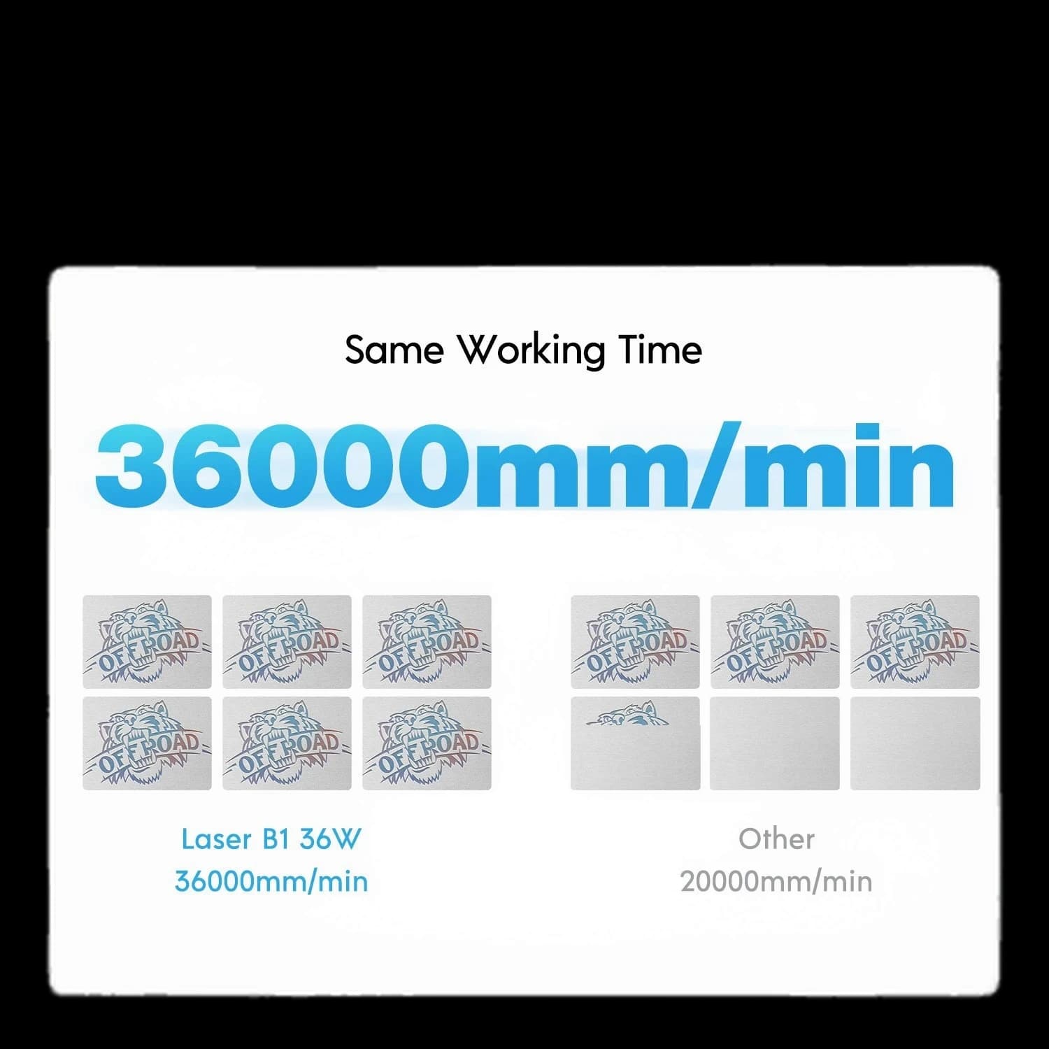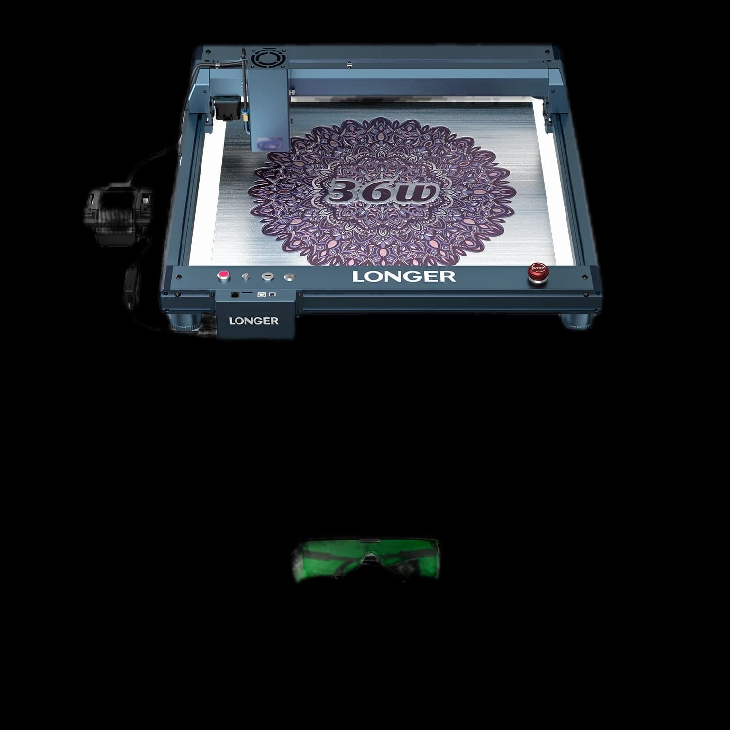 The Longer B1 30W Laser Engraving Machine features a 6-core diode laser with 33-36W power, enhancing cutting capabilities by 20%. The highly concentrated laser beam can cut 25mm basswood and 50mm acrylic through multiple passes. It offers a spacious 17.72 x 17.32 inch (450 x 440 mm) engraving area, perfect for A3 panels. With engraving speeds up to 36,000 mm/min and a 32-bit chipset, it delivers high performance. Equipped with a smart Air-Assist system automatically controlled by LightBurn, plus 8 major safety protections and a sturdy frame. Ideal for professional and hobby applications.