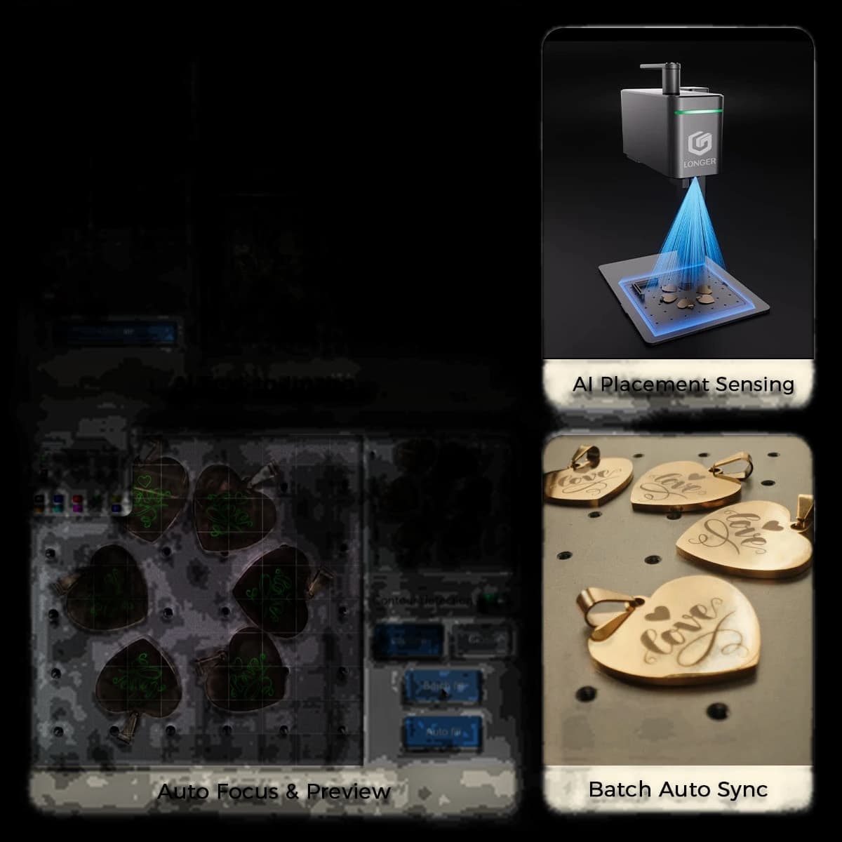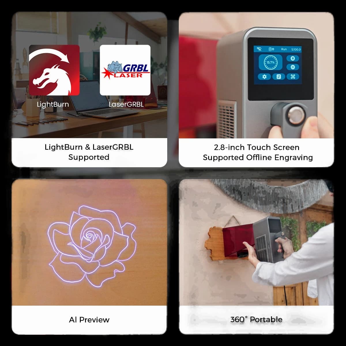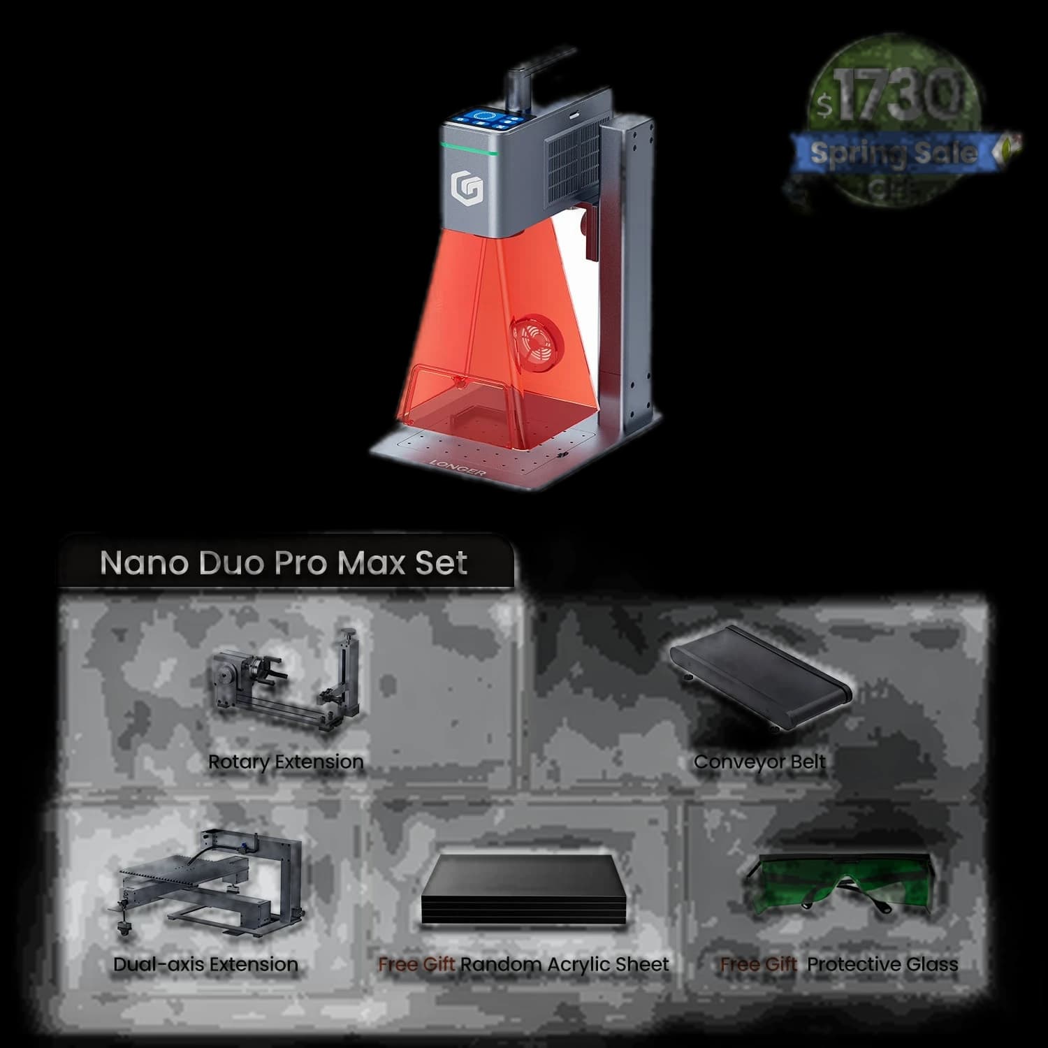 The Longer Nano Duo AI Laser Engraver maximizes creative efficiency with its self-developed AI, featuring intelligent design, auto-positioning, and auto-filling capabilities. It offers dual laser power options: a 20W blue diode laser and a 2W infrared laser, meeting diverse engraving and cutting needs. The industry's first dual-axis extension expands the working area to 300mm x 300mm and supports vertical cutting for expanded creative possibilities. Its compact and portable design makes it ideal for home and small workshops. The user-friendly interface, including intuitive software and the proprietary LaserBurn app, ensures seamless setup and operation.
