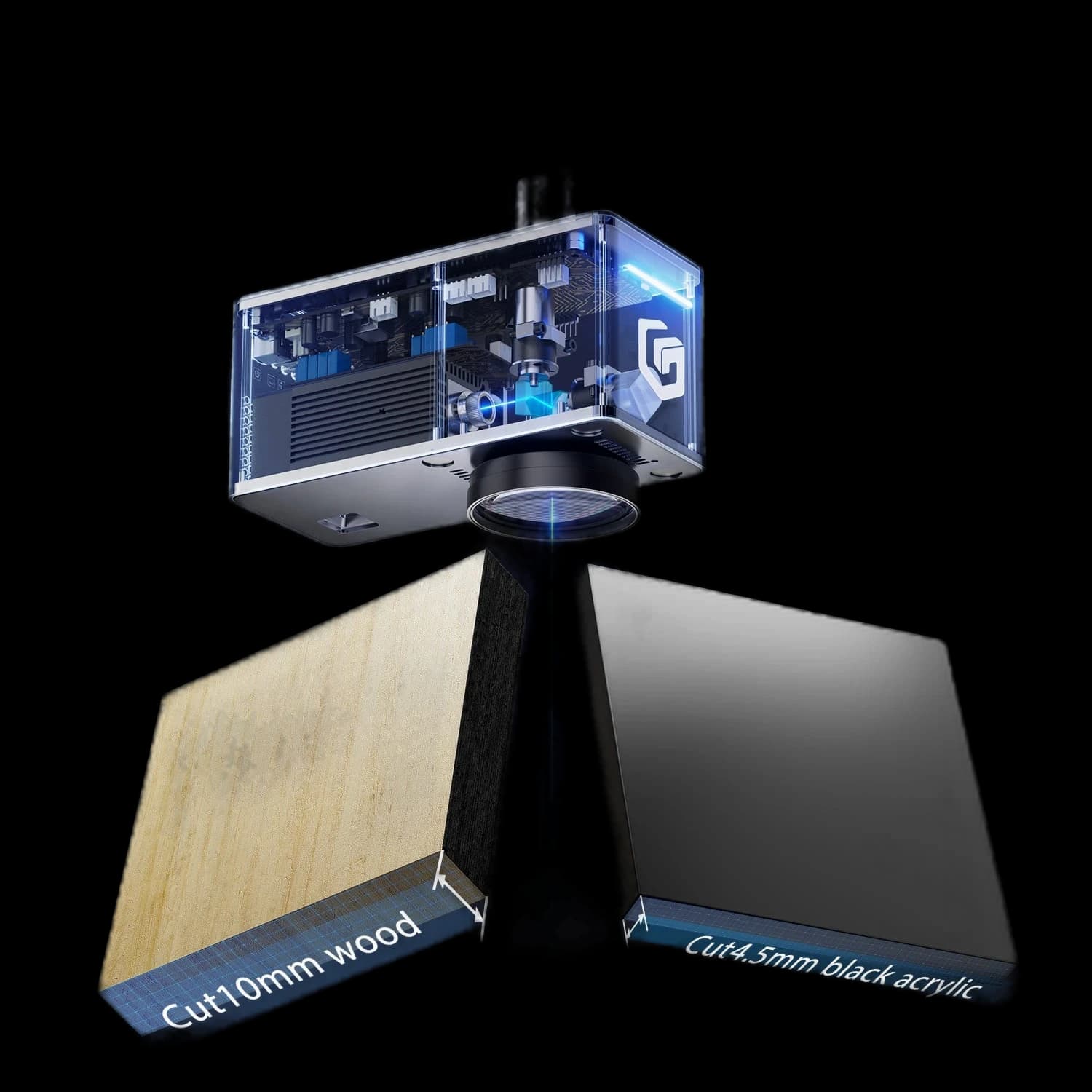 Experience the freedom of creative crafting with the Longer Nano Pro, a 12W diode laser engraver designed for portability and precision. Powered by a Galvo system, it delivers ultra-fast engraving speeds up to 5000 mm/s, making quick work of any project. Achieve incredible detail with 0.01 * 0.01mm precision and a field lens that ensures crisp, undistorted engravings on flat and curved surfaces. Control your projects effortlessly with the user-friendly app or through supported software like LightBurn and LaserGRBL. With a 100*300mm workspace and the power to cut wood up to 10mm thick, it's the perfect DIY tool for engraving and cutting wood, acrylic, leather, cloth, metal, and ceramics.