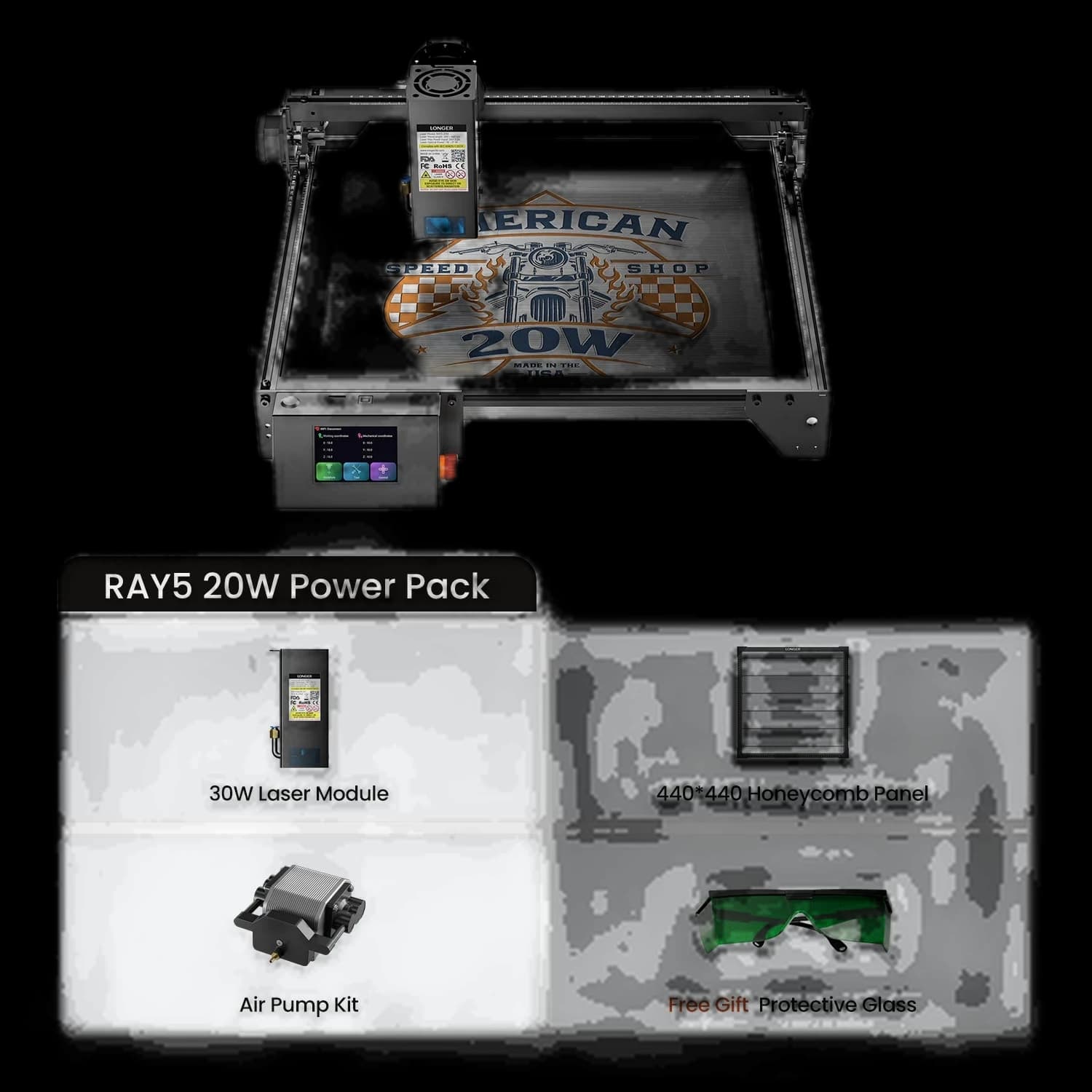 The Longer Ray5 10W/20W Laser Engraver delivers exceptional versatility with interchangeable laser modules (30W/20W/10W/5W/2W IR), perfect for a wide range of materials. Designed for beginners, it features easy assembly and precision engraving up to 0.01 mm at speeds of up to 24,000 mm per minute. Compatible with Lightburn, LaserGRBL, and LaserBurn for seamless control. Whether you're creating crafts or professional projects, this laser engraver combines precision, speed, and user-friendly operation for reliable results.