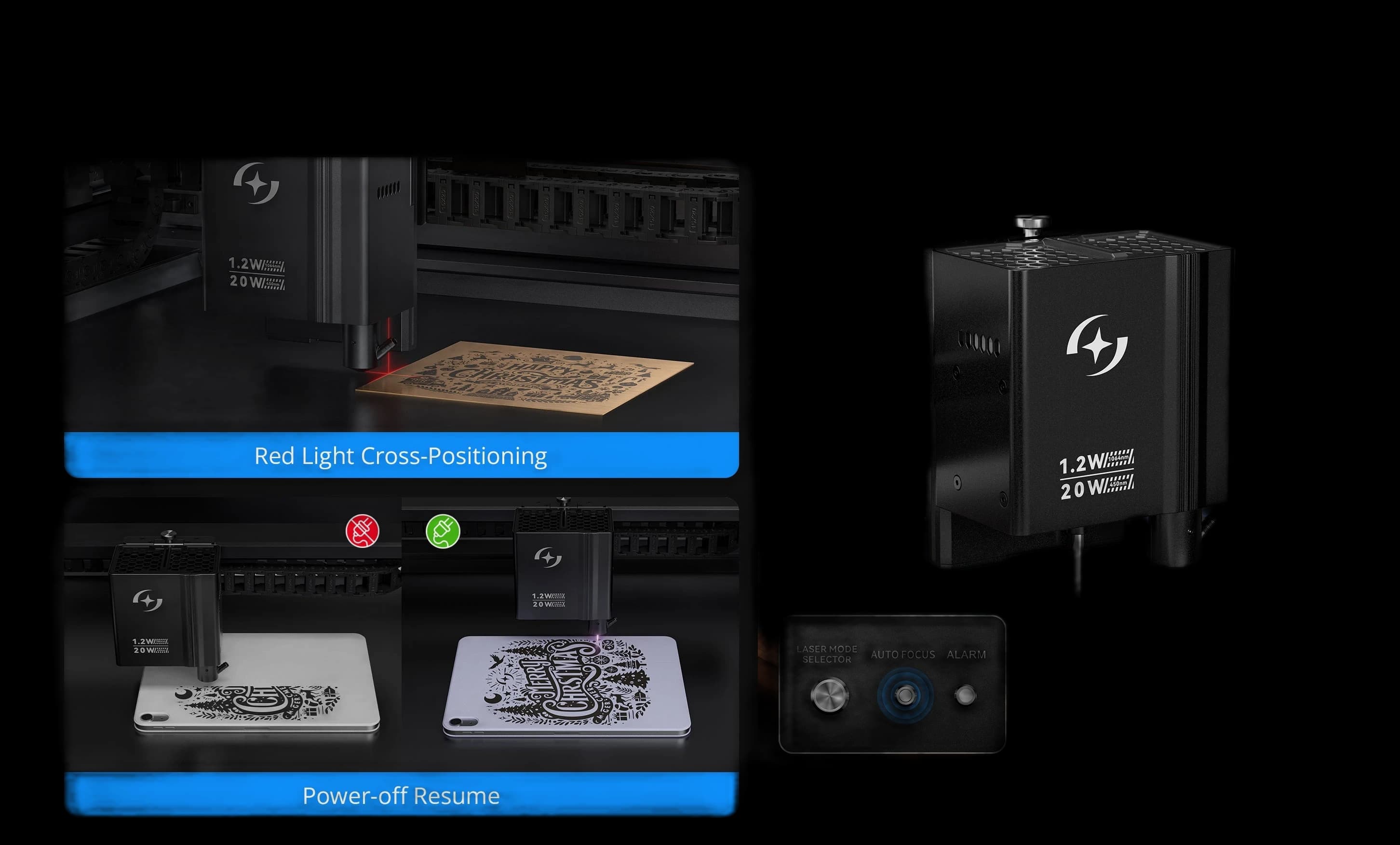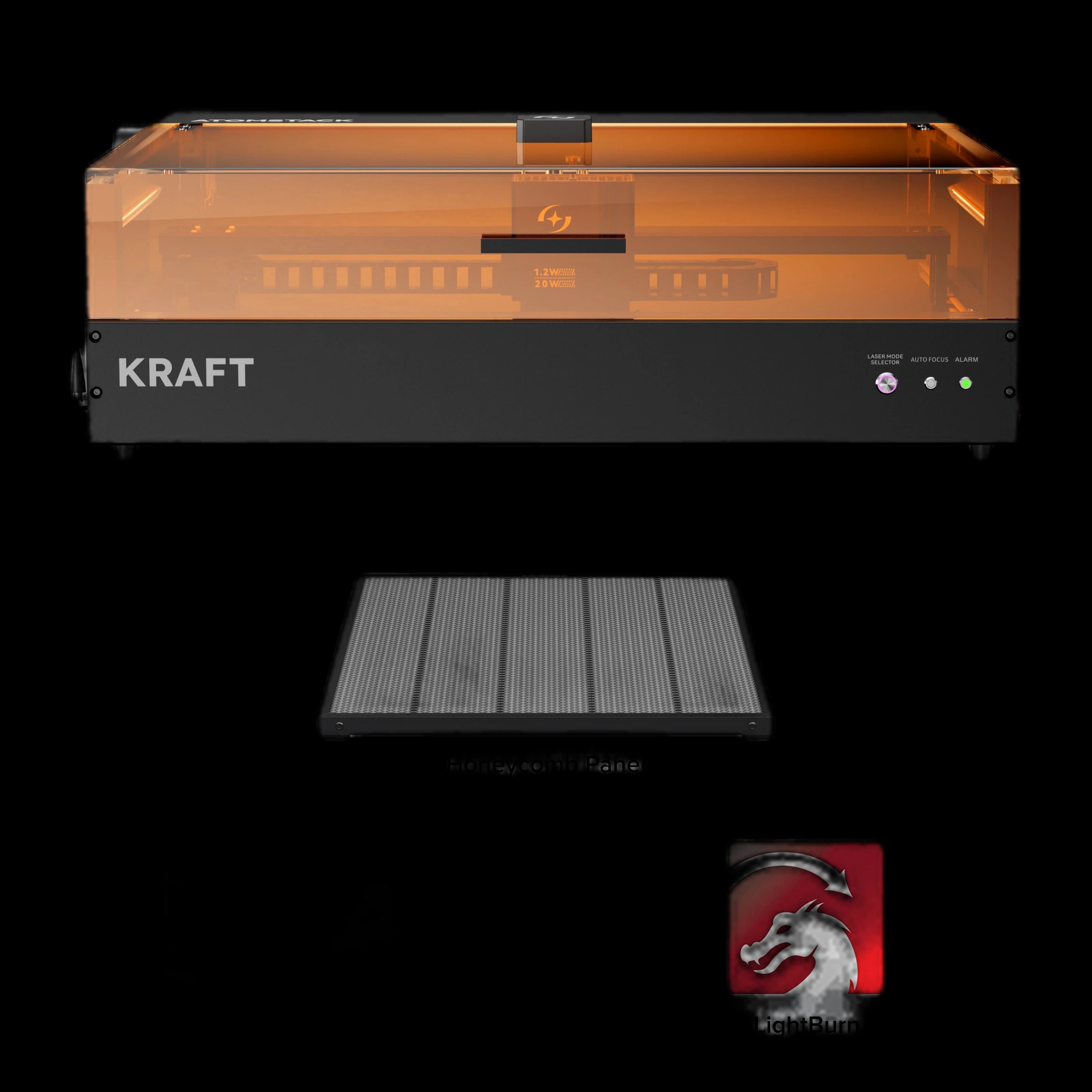 Experience the world's first synchronized dual-laser engraver. The AtomStack Kraft Dual-laser 20W + 1.2W IR offers unique flexibility with three lasers in one device. Switching between the 20W diode and 1.2W IR laser is effortless with a single button. This refurbished engraver is perfect for creative projects and precise cuts. Two lasers work in synchronization for incredibly fast and efficient processing of various materials. Boost your productivity with this advanced technology. Ideal for hobbyists and professionals alike.