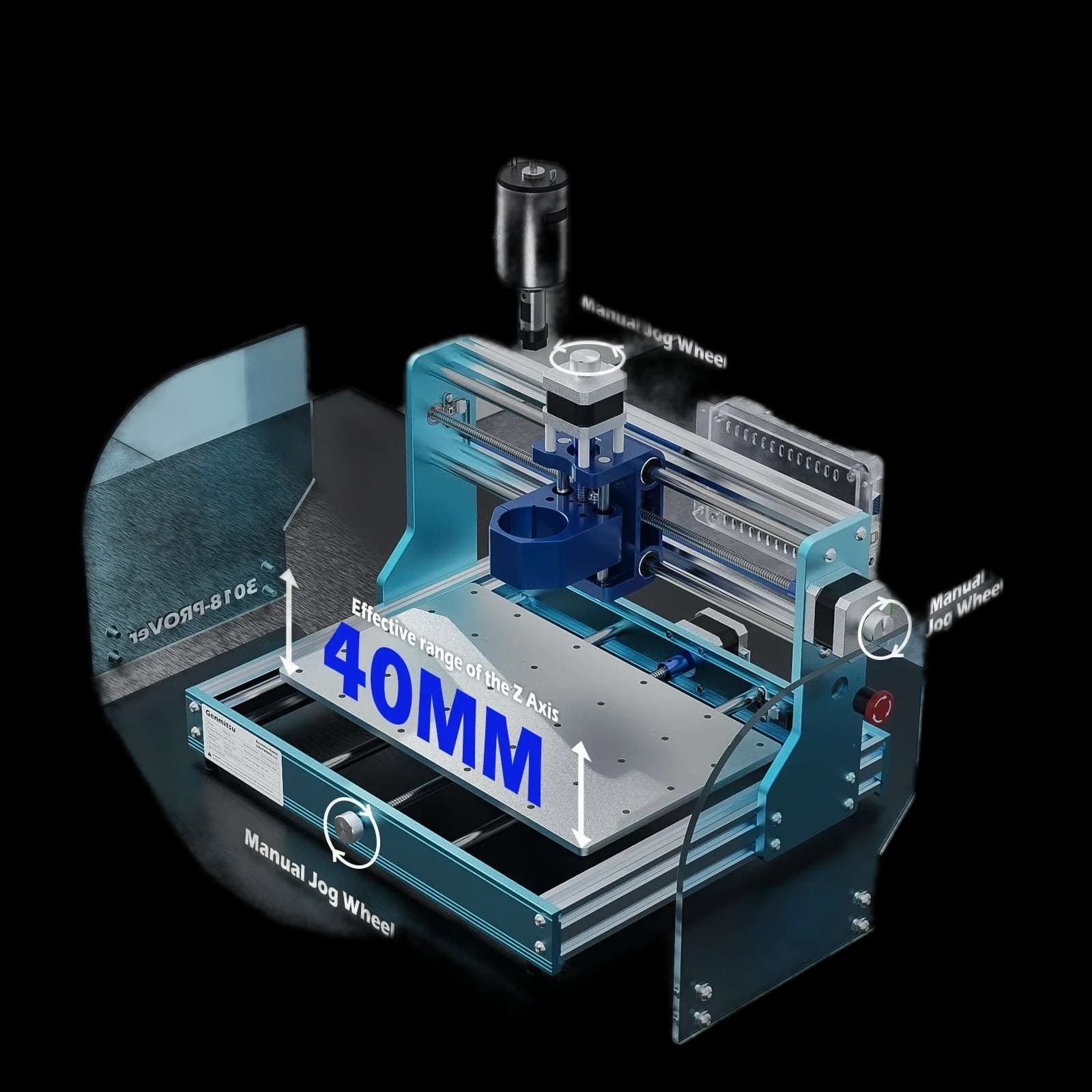 Step into CNC machining with the user-friendly SainSmart 3018-PROVer V2 Desktop CNC Router Kit, semi-assembled for beginners. This upgraded version features a redesigned control board with more add-on ports for future expansion and comes with more parts pre-assembled to save you assembly time. Perfect for hobbyists, DIY enthusiasts, or small business owners, it offers an accessible entry point into the world of digital fabrication. Backed by SainSmart's industry-leading support and return policy, you can start your projects with confidence. The 3018-PROVer V2 is designed to be an affordable, reliable machine that helps you quickly create prototypes, signs, and intricate parts with precision.