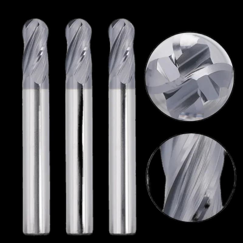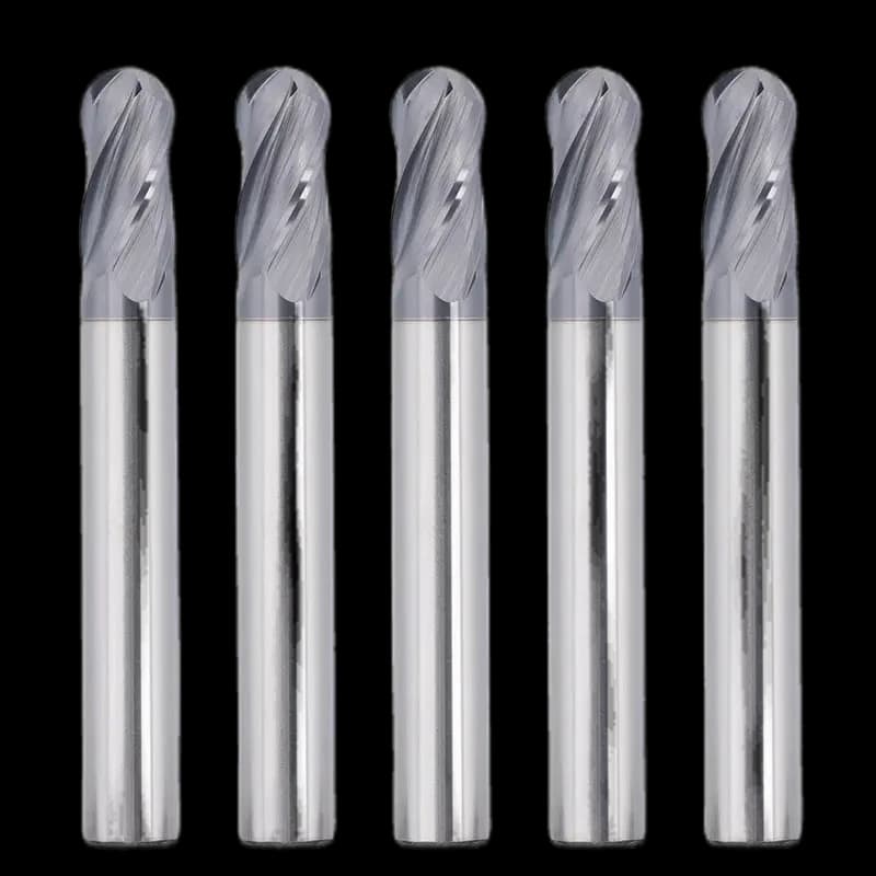 The SainSmart 4BNC05 5-piece end mill set features a 1/4" shank with 4-flutes and a ball nose design, perfect for cutting carbon steel, stainless steel, aluminum, and other metals. Made from premium carbide steel, these bits ensure exceptional durability and long-lasting performance. With a 2" overall length, they deliver precise and efficient cutting results for your CNC router, mill, or lathe operations. This cost-effective set offers outstanding value for long-term use. These end mills are essential tools for any metalworking project, providing reliable performance and clean finishes on tough materials.