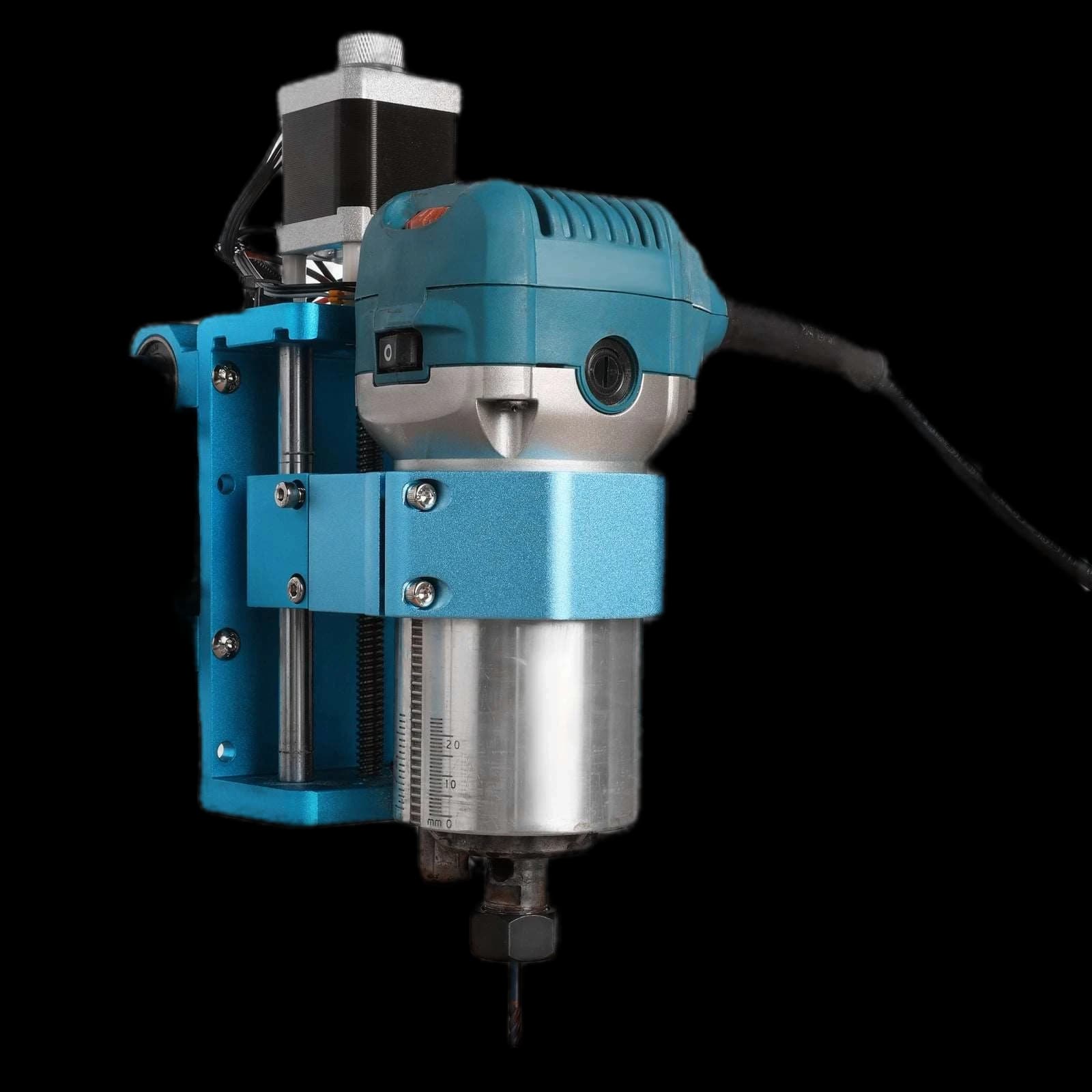 This high-quality aluminum spindle holder, with a 65-69mm diameter, is precision-machined for superior rigidity and durability. It ensures increased stability, reduces operating noise, and maintains a perfectly level spindle position with its robust mounting screw pattern. Installation is quick and easy, requiring just four screws to replace the stock carriage. Compatible with popular spindle motors like the Makita RT0700C and Dewalt DWP611. Perfectly designed for the 4040-PRO, 4040-PRO MAX, 4040 Reno, 3020-PRO Ultra, and 3030-PROVer MAX CNC machines, offering a reliable and high-performance upgrade.