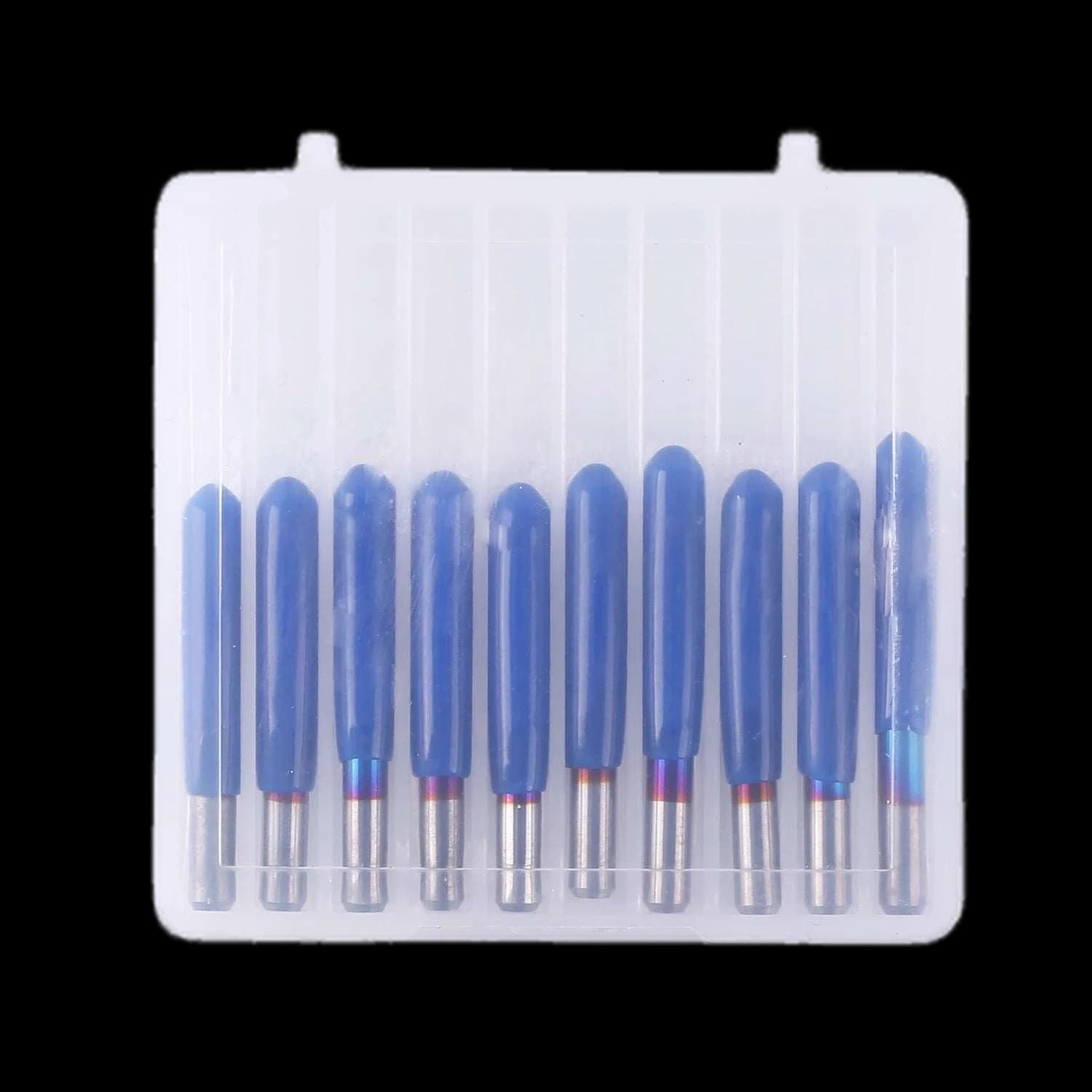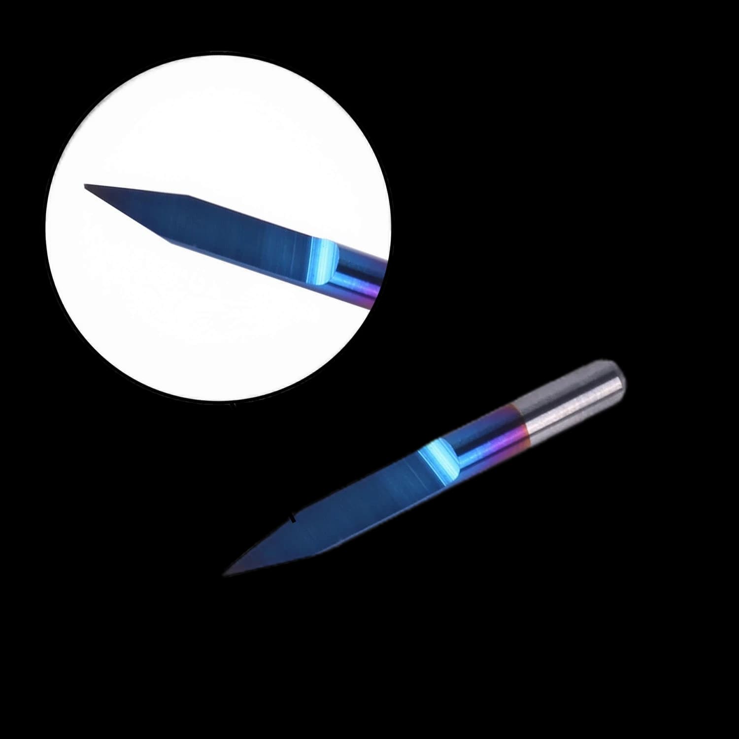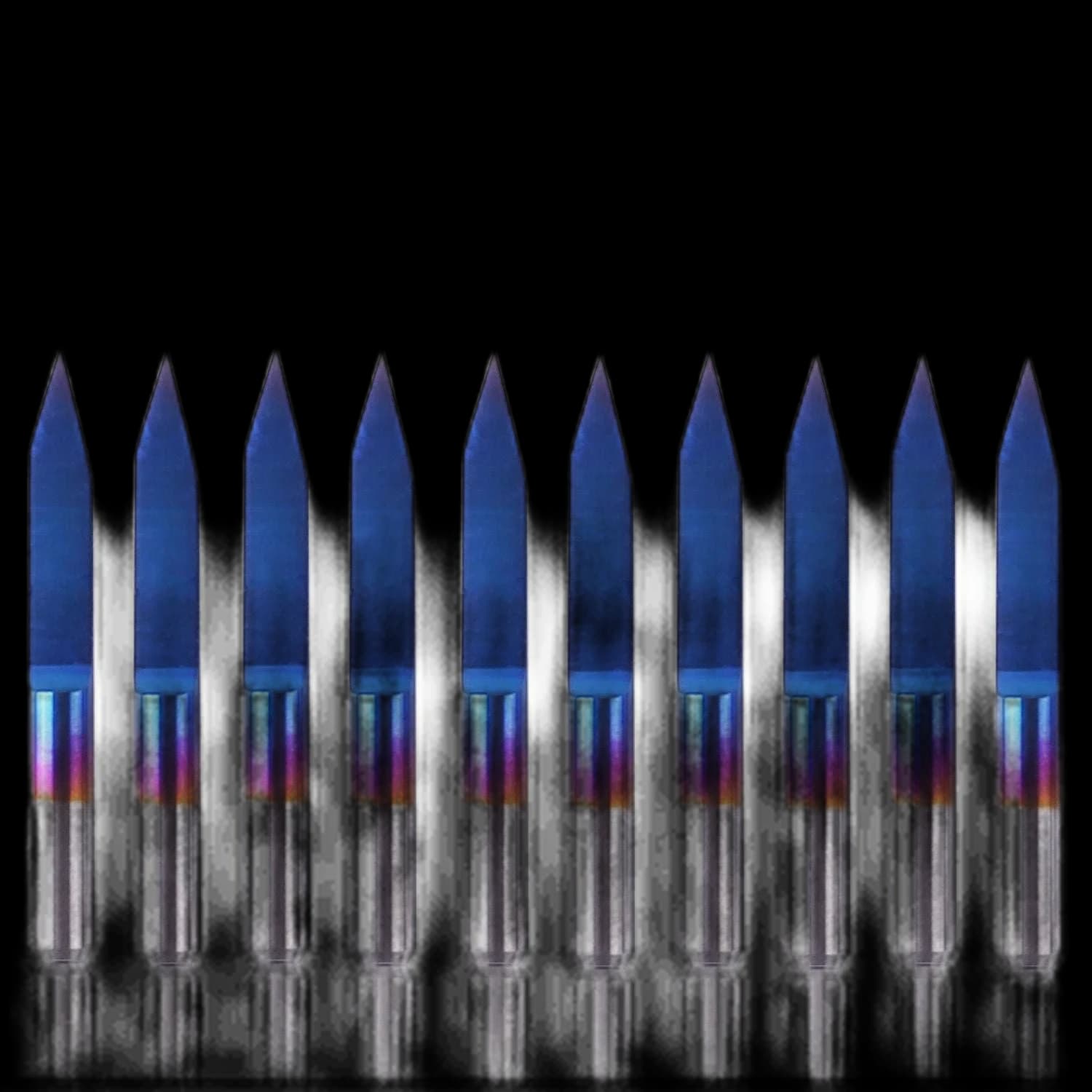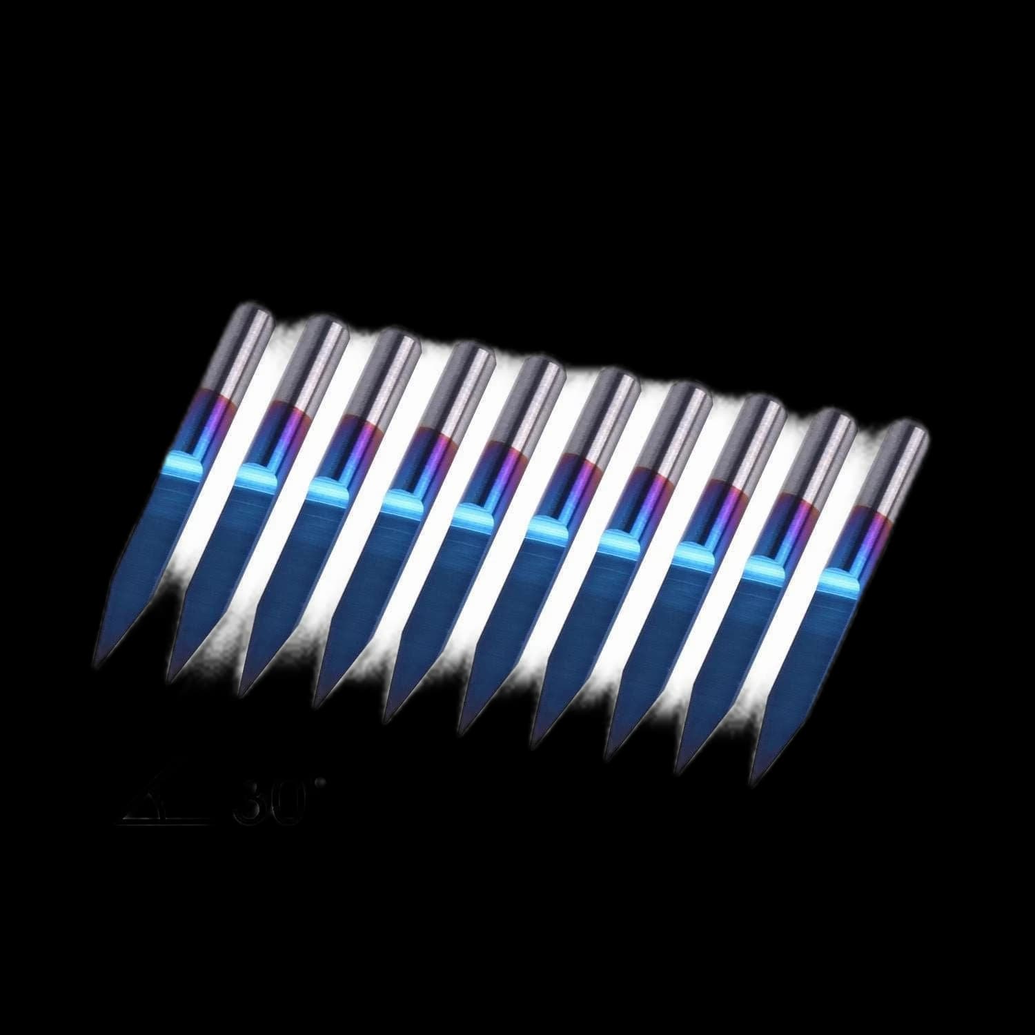 Sainsmart 70V30 10-Piece Engraving Bit Set featuring a 30-degree cutting angle and 0.1mm tip diameter. These nano blue-coated bits are designed for precision engraving on CNC machines. With a 3.175mm shank diameter and 30mm total length, they provide excellent stability and accuracy. Perfect for working with various materials including wood, metal, and plastics. This complete set includes 10 bits for extended tool life and replacements. Enhance the precision and quality of your engraving projects with these professional bits suitable for CNC routers, mills, and lathes.