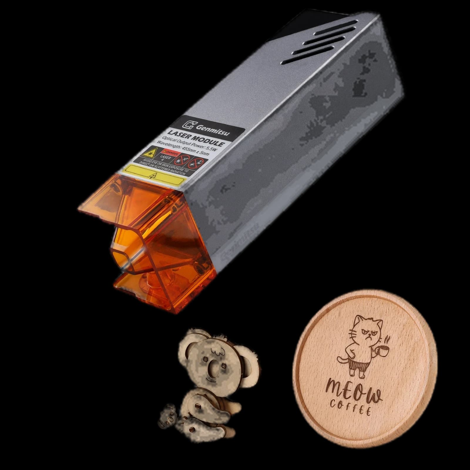 The CFL55-33 Laser Module is a cost-effective upgrade designed for creators who want high performance without the high price tag. With a built-in circuit board, this module keeps things compact and clean, making it an ideal companion for small to mid-sized CNC machines. Its lightweight design doesn’t compromise on power or usability. Easy to install with no need for an external power supply, and equipped with a focus-assist light shield, it ensures precision and safety. Fully compatible with multiple Genmitsu CNC models, it’s the perfect tool for adding laser engraving capabilities to your workshop. This 5.5W diode laser with a wavelength of 445nm is specially designed for use with Genmitsu Cubiko, 3018-PROVer, 3018-PRO and 3020-PRO MAX, 4040 Series CNC Machines. Power: 5.5W, Spot size: 0.1 x 0.1mm, Focal length: 30mm, Wavelength: 455 ± 5nm, Input: 12V / 2.5A.