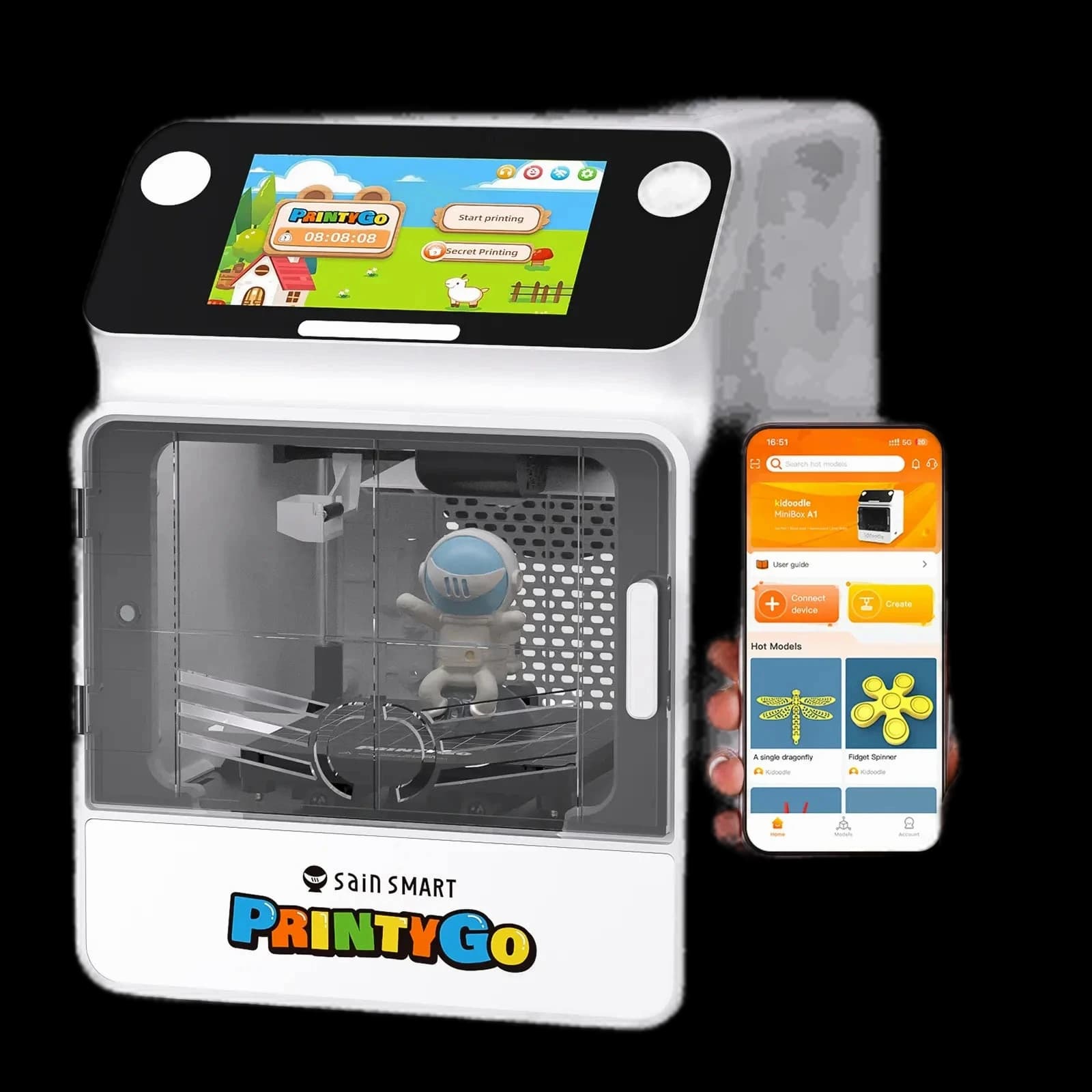 Unleash your child’s creativity with the perfect 3D printer for young creators. The SainSmart PrintyGo combines blazing-fast performance, effortless operation, and built-in STEM education resources, making it the ultimate first step into 3D printing. Designed for fun, safety, and learning, this smart printer turns imagination into reality. Whether for school projects, creative hobbies, or weekend experiments, it provides a safe and easy way to bring ideas to life. Perfect for young makers, it sparks creativity and introduces fundamental STEM skills in an engaging, hands-on way.