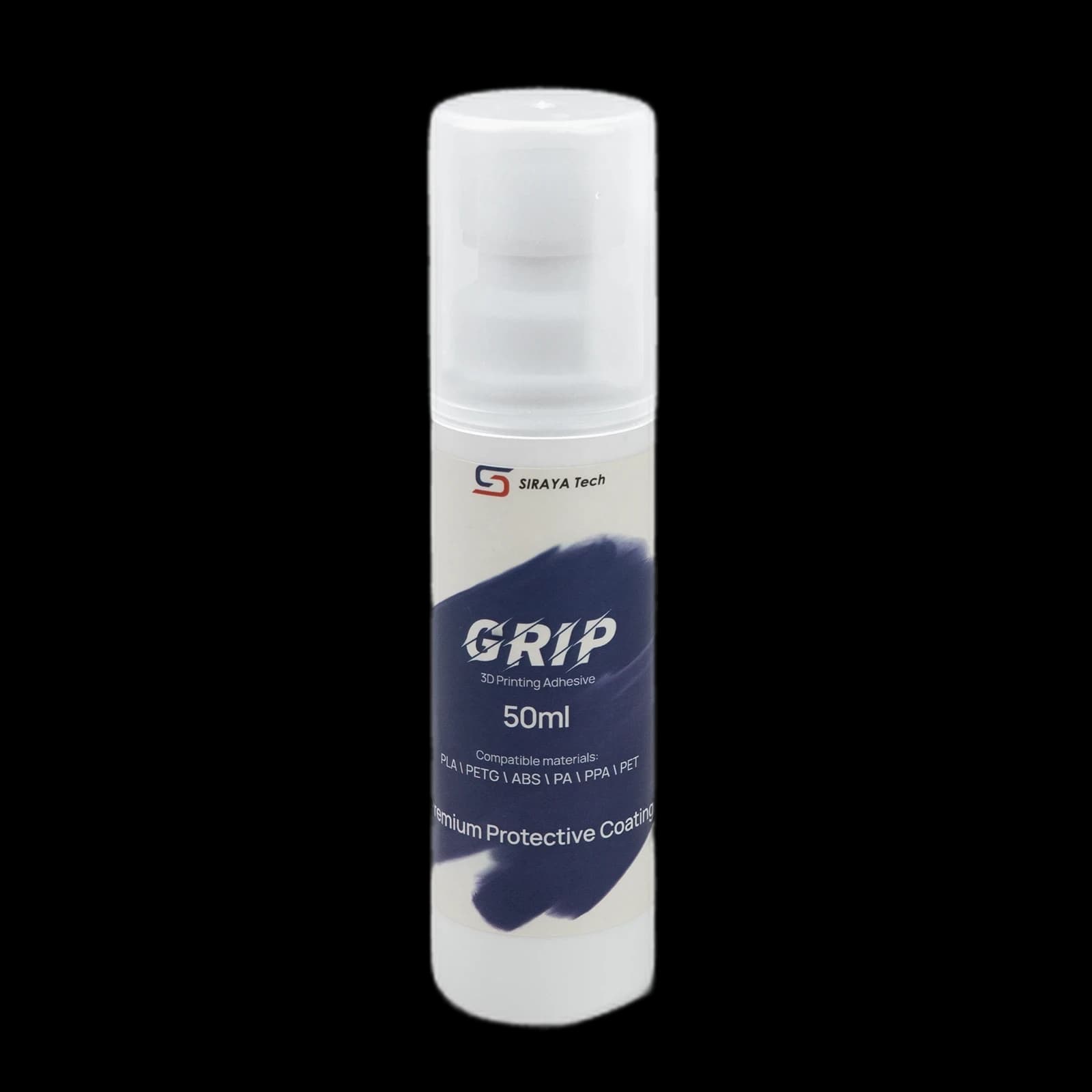 Grip - FDM Printer Bed Adhesive from Siraya Tech is engineered for 24/7 industrial production to eliminate first-layer failures and ensure consistent success. Specialized for high-performance plastics like PPA, PEBA, and Carbon Fiber Nylon, as well as standard PLA/ABS. Smart Thermal Release: Provides high-strength grip when heated (>40°C) and automatic self-release when cooled (<30°C) for easy, scraper-free removal. Warping Prevention: Formulated to lock down high-shrinkage materials like Nylon and ASA, ensuring dimensional accuracy for complex parts. Easy Water Cleanup: A non-toxic, water-soluble formula that wipes clean with a damp cloth, safely protecting PEI, Glass, and Steel surfaces.