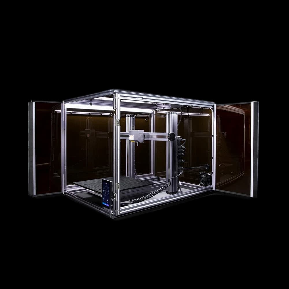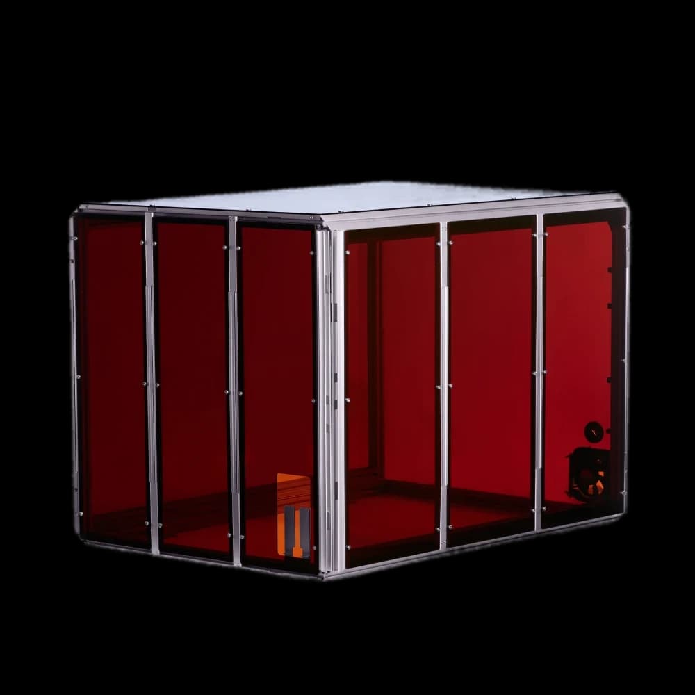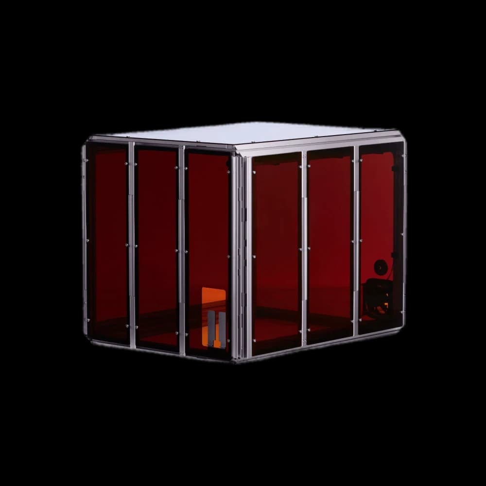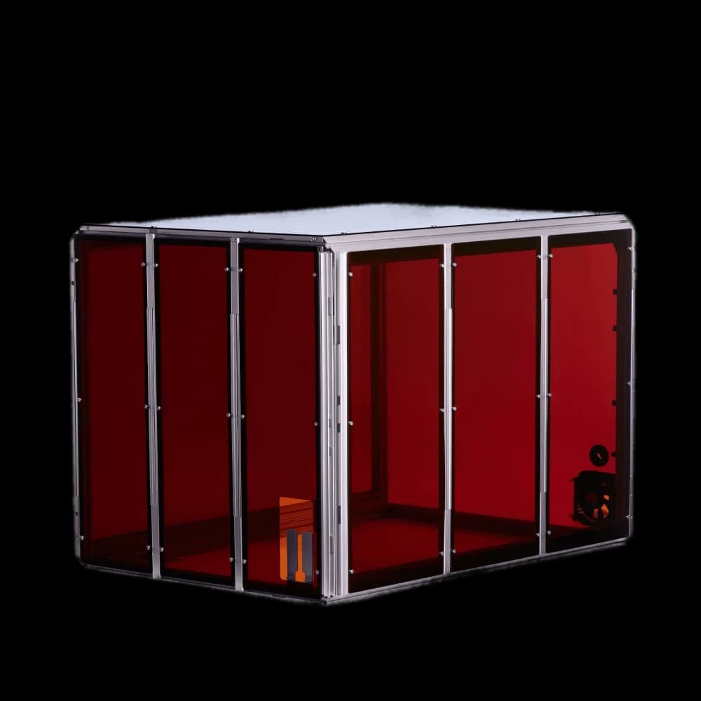 Protect your Snapmaker 2.0 with our purpose-built enclosure. Designed for FDM/SLA/resin 3D printers, this enclosure ensures Class 1 laser safety with specially designed panels and door detection. It maintains a stable temperature environment, perfect for high-performance filaments like ABS. Enjoy a quieter workspace with up to 10 dB(A) noise reduction. The enclosure effectively shields against smells, fumes, and dust from laser and CNC operations, featuring a built-in exhaust system. Ideal for makers and professionals seeking a controlled printing environment. Enhance print quality, safety, and comfort with this essential Snapmaker EU accessory.