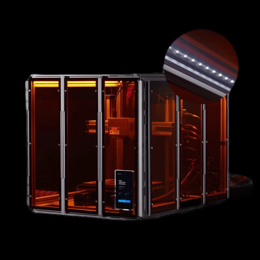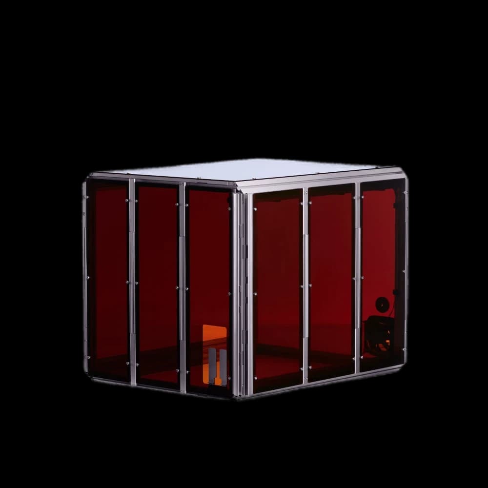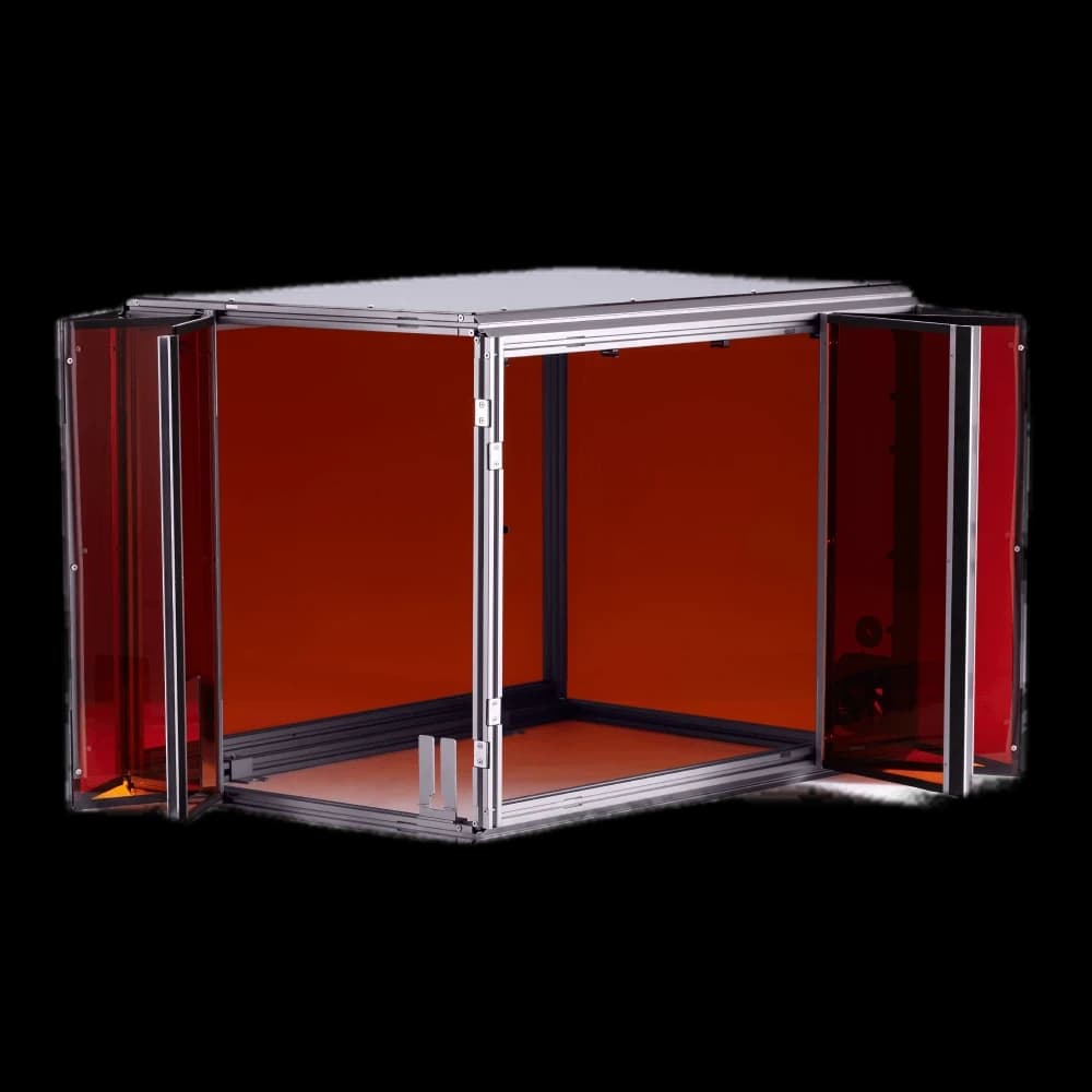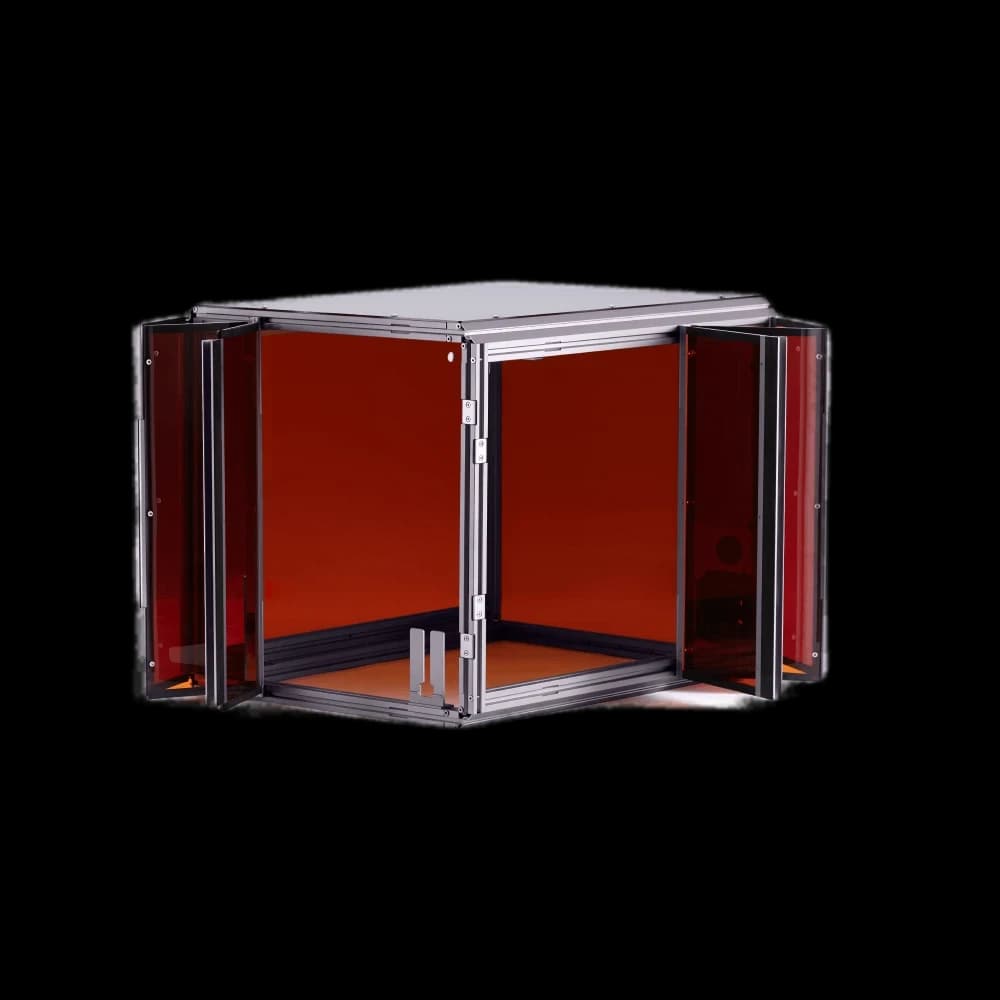 Protect your Snapmaker 2.0 with our purpose-built enclosure. Designed for FDM/SLA/resin 3D printers, this enclosure ensures Class 1 laser safety with specially designed panels and door detection. It maintains a stable temperature environment, perfect for high-performance filaments like ABS. Enjoy a quieter workspace with up to 10 dB(A) noise reduction. The enclosure effectively shields against smells, fumes, and dust from laser and CNC operations, featuring a built-in exhaust system. Ideal for makers and professionals seeking a controlled printing environment. Enhance print quality, safety, and comfort with this essential Snapmaker EU accessory.