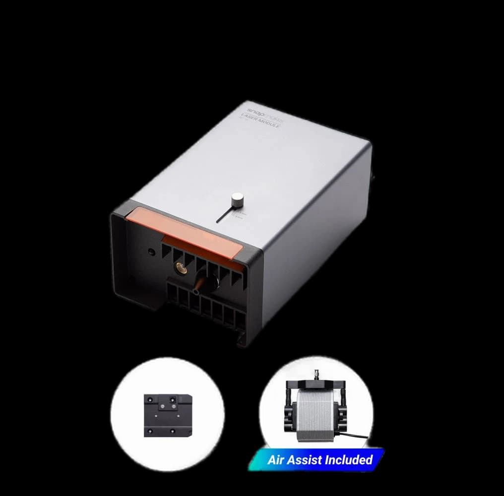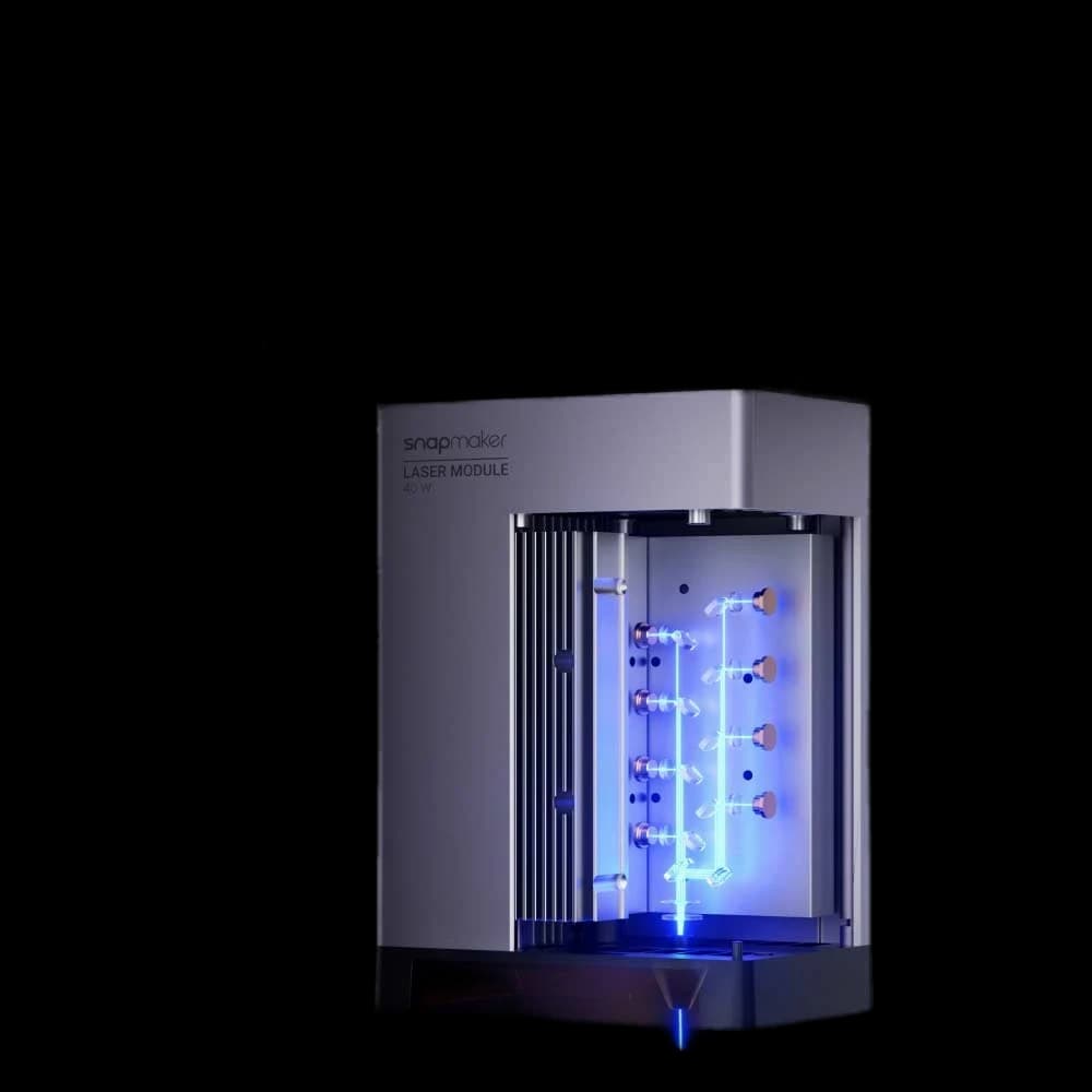 The Snapmaker 40W Laser Module with Air Assist is a powerful laser cutter and engraver, perfect for creative professionals and hobbyists. With 40W of power, it delivers fast and precise cutting and engraving on various materials like wood, paper, leather, and more. The built-in air assist helps to cleanly clear away burn residue and improves the quality of your results. The module is compatible with Snapmaker 3D printers, allowing you to seamlessly switch between 3D printing and laser operations. As a Class 4 laser, it requires safety measures such as an enclosure or laser safety glasses. Elevate your creativity and productivity with this high-quality Snapmaker laser module.