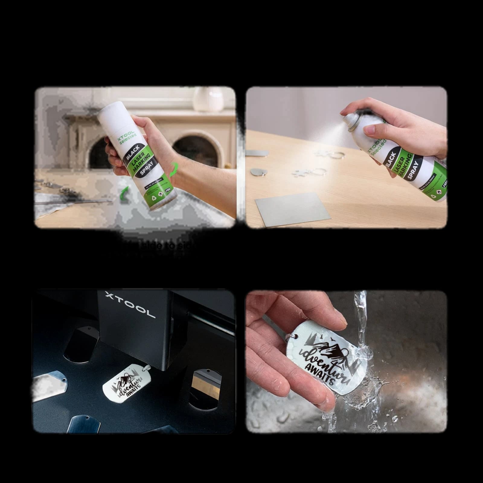 Discover the Black Laser Marking Spray from xTool, the perfect solution for laser cutting and engraving. This spray contains powder and should be shaken well before use, but avoid vigorous shaking to prevent bulging at the bottom. Shake until you hear the glass beads moving. Designed for easy and precise marking on various materials, this spray leverages QR code technology to automatically find optimal processing parameters. Simply place the QR code sticker in the machine, click 'Refresh background,' and apply the settings. For camera-equipped machines, auto-scanning works seamlessly; non-camera models can manually scan. Essential for xTool laser users, it ensures professional results every time.