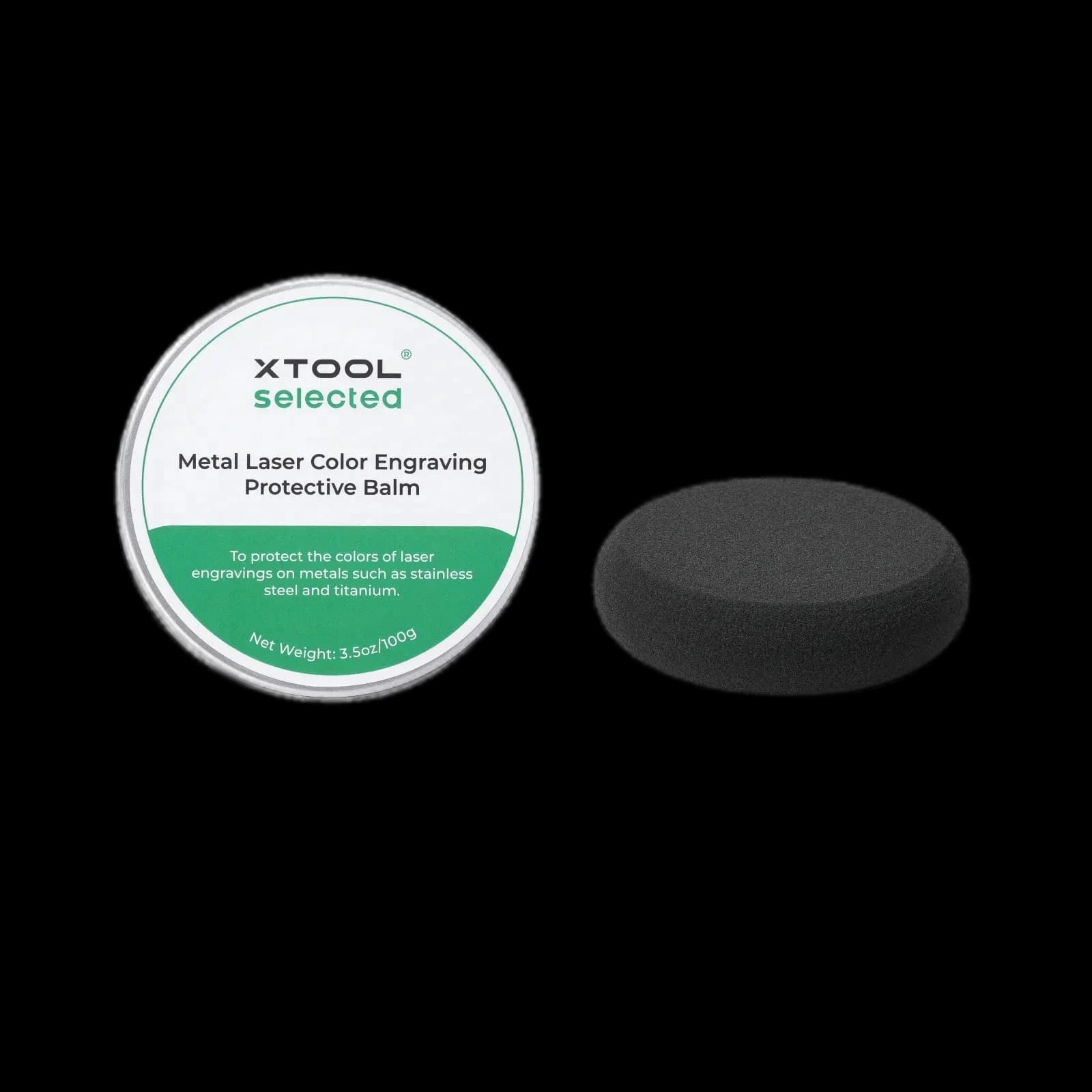 Protect your laser-engraved metal creations with xTool's Metal Laser Color Engraving Protective Balm. This specialized formula is enriched with botanical extracts, biodegradable non-ionic surfactants, bio-enzymes, natural milk components, and deionized water to create a powerful shield against oxidation, fading, and rust. The balm comes as a smooth, white paste with a subtle, pleasant scent and includes a sponge for easy application. For best results, ensure your metal surface is clean, then apply the balm in a circular motion and buff away any residue with a clean, dry towel. A single 100g jar provides long-lasting protection for up to one square meter of surface area, making it both efficient and cost-effective. Store in a ventilated, dry place between -5°C and 35°C. For optimal results, use with the provided sponge and avoid direct skin contact.